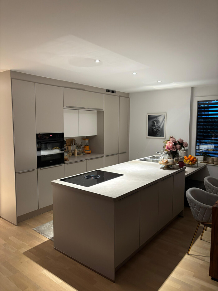 Einbauküche mit Insel und Markengeräten (Siemens, Bora)