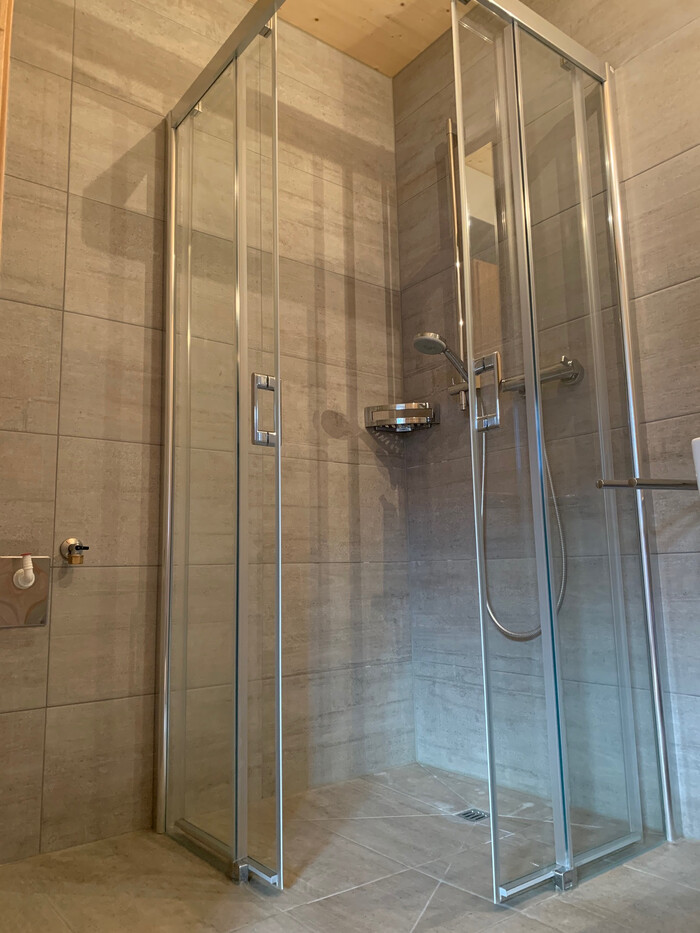 2 Badezimmer mit Dusche, Badewanne und WC