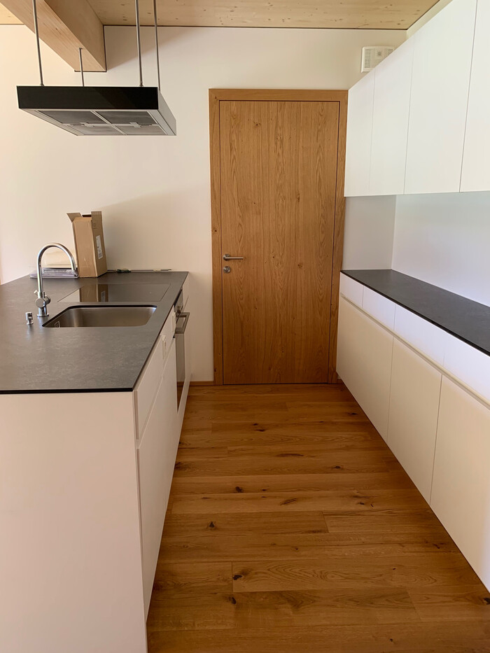 Ess-Wohnraum mit moderner Tischlerküche