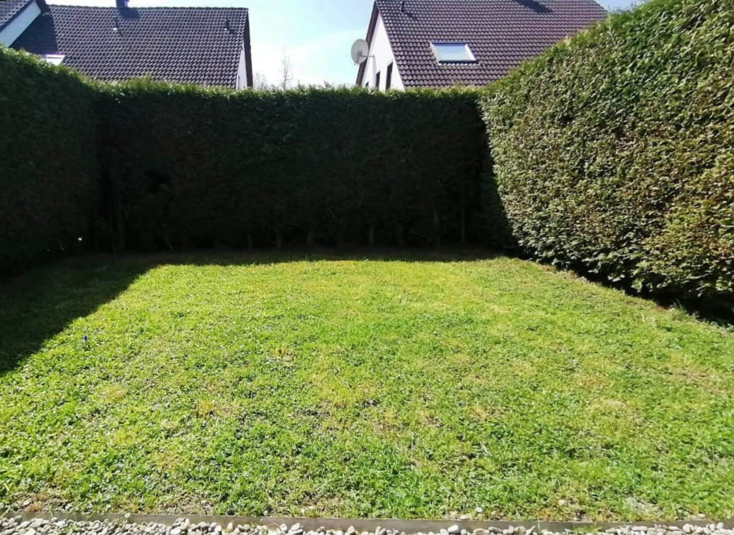 Das großzügige Wohn-/Schlafzimmer verfügt über eine praktische Nische, die als Abstellraum oder als begehbarer Kleiderschrank genutzt werden kann. Von diesem Raum aus gelangt man auf die überdachte Terrasse und in den Garten, der zum Entspannen einlädt und die Wohnung vervollständigt.