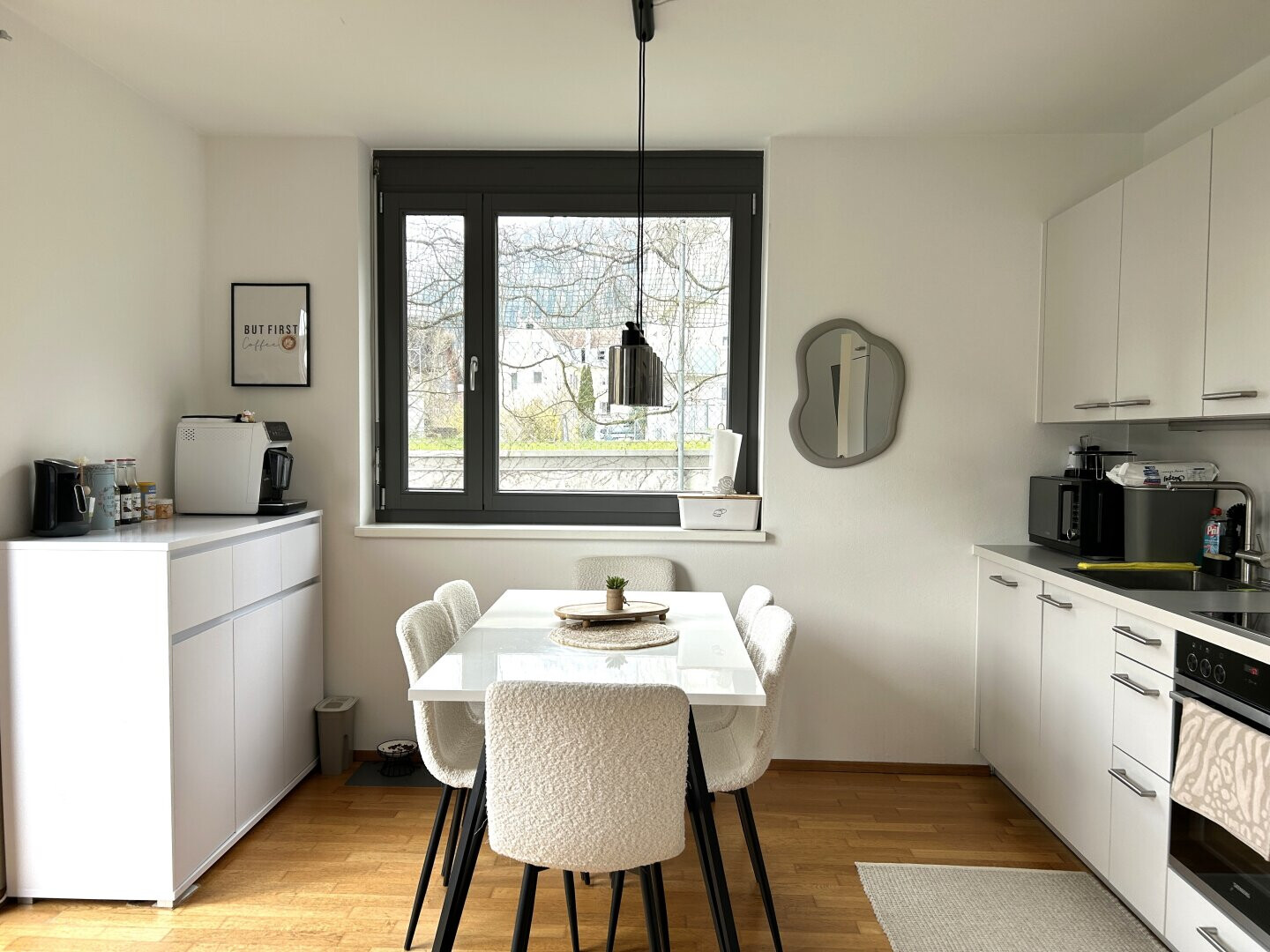 Die Wohnung überzeugt durch eine durchdachte Raumaufteilung und helle, freundliche Räume. Der großzügige Wohn- und Essbereich mit direktem Zugang zur Terrasse und dem privaten Garten lädt zum Entspannen und Verweilen ein. Hier genießen Sie sonnige Stunden in ruhiger Umgebung.