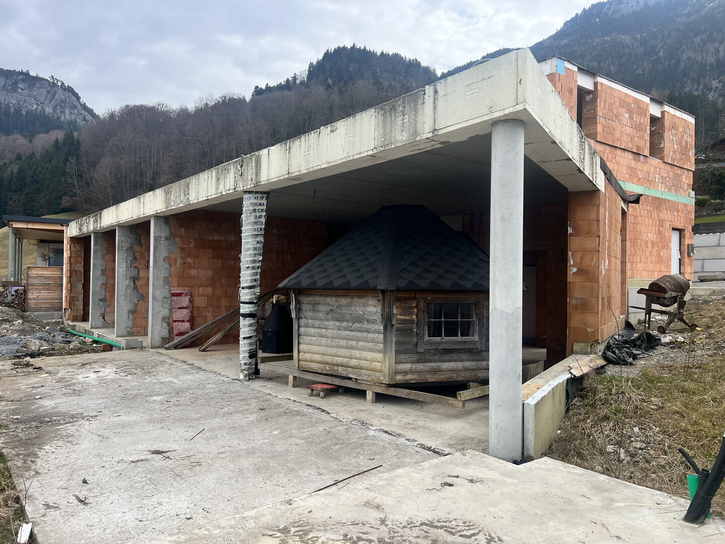 Das Bauprojekt wurde vor zwei Jahren begonnen, kann jedoch aus familieren Gründen nicht fertiggestellt werden.