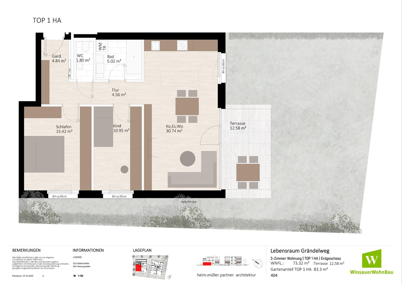 Die Wohnanlage wird in hochwertiger Massivbauweise ausgeführt und barrierefrei mit Lift und eigener Tiefgarage ausgestattet. Jede der großzügig eingeteilten 2, 3 und 4 Zimmerwohnungen verfügt über einen eigenen Gartenanteil oder eine funktionelle Terrasse.