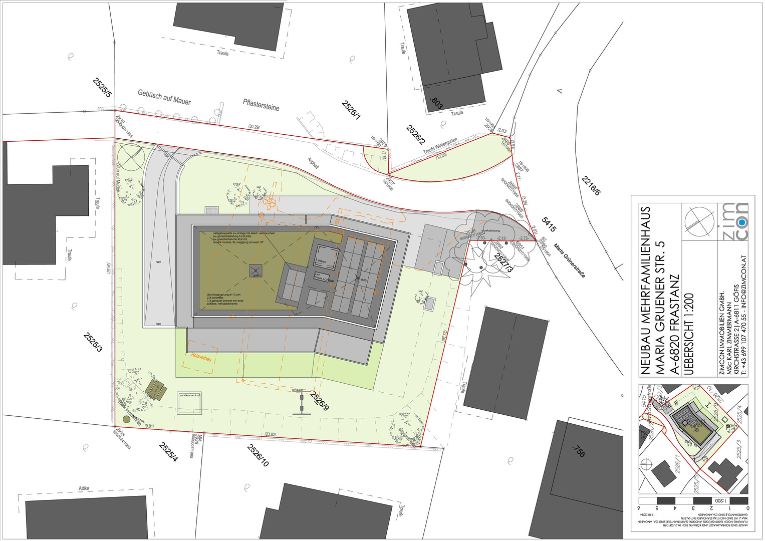 Die Wohnanlage umfasst insgesamt 8 hochwertige Wohneinheiten sowie eine Tiefgarage mit 9 Stellplätzen für die Bewohner und 2 zusätzliche Besucherstellplätze im Freien.