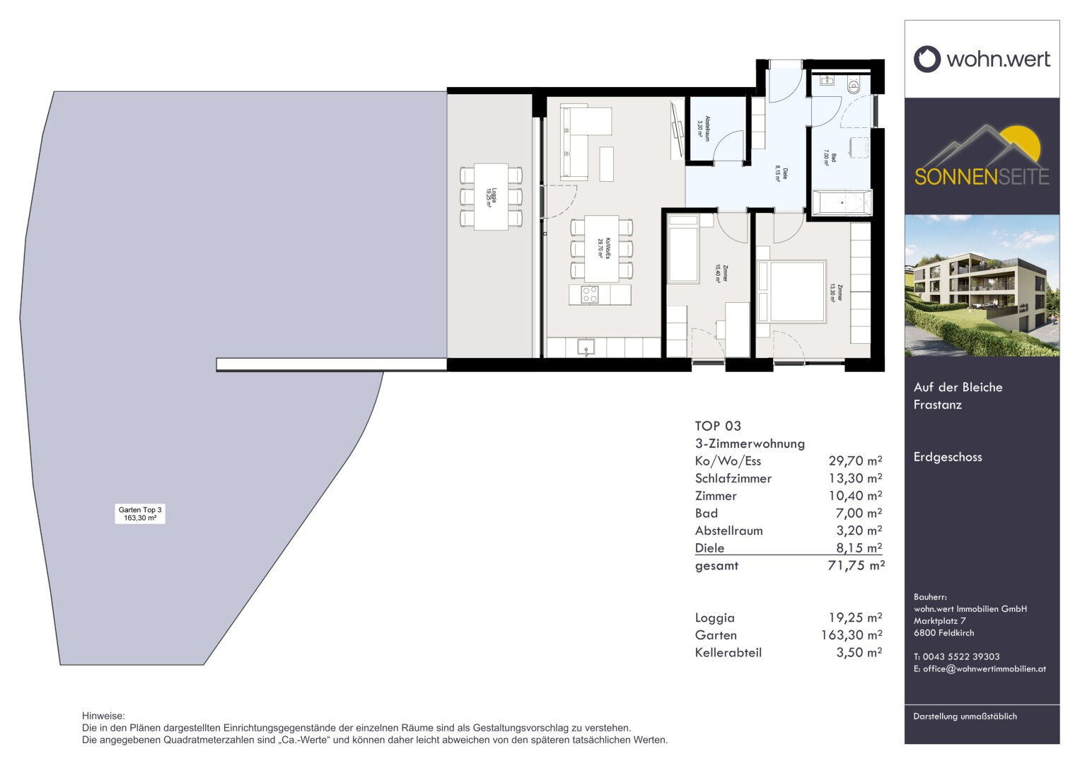 Die Wohnanlage „Sonnenseite“ bietet ein exklusives Wohngefühl in einer der begehrtesten Lagen von Frastanz. Ob für Familien, Paare oder Berufspendler – diese Immobilie vereint Lebensqualität, Komfort und Naturverbundenheit auf einzigartige Weise. Erleben Sie Wohnkomfort auf der Sonnenseite des Lebens!