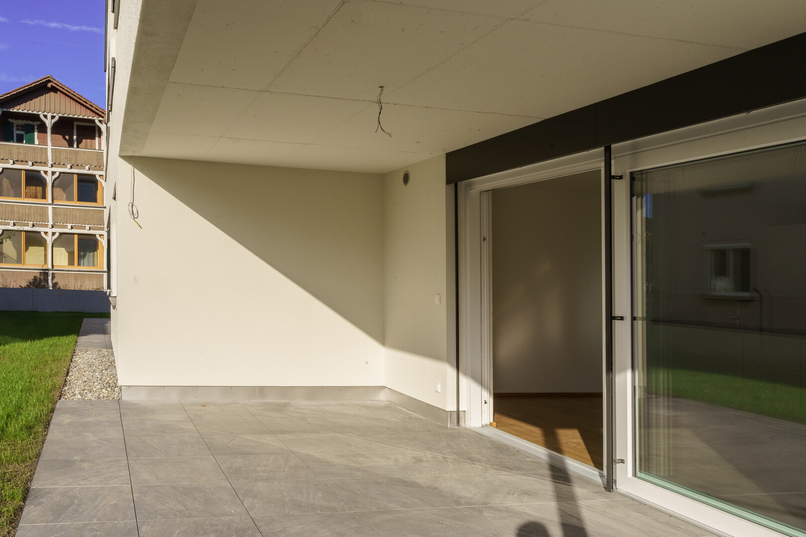 - Überdachte Terrasse mit hochwertigem Feinsteinzeug