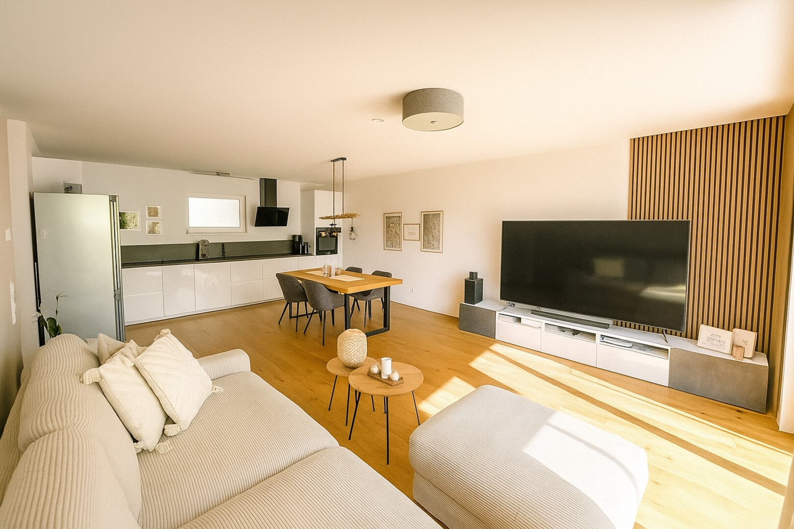 Die Wohnung überzeugt durch eine durchdachte Raumaufteilung und ein angenehmes Wohnambiente. Vom einladenden Vorraum mit praktischer Garderobe gelangen Sie in zwei Schlafzimmer sowie in das großzügige Badezimmer mit Badewanne. Ein separates Gäste-WC und ein Abstellraum bieten zusätzlichen Komfort. Das helle Wohnzimmer mit offener Küche bildet das Herzstück der Wohnung: große Fensterflächen schaffen eine freundliche Atmosphäre und öffnen den Blick auf die sonnige Terrasse mit dem weitläufigen Gartenbereich.