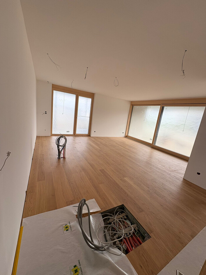 - Modernste flächenbündig eingebaute LED-Leuchten, Tischlereinbaumöbel (Küche, Garderobe, Abstellbereich).