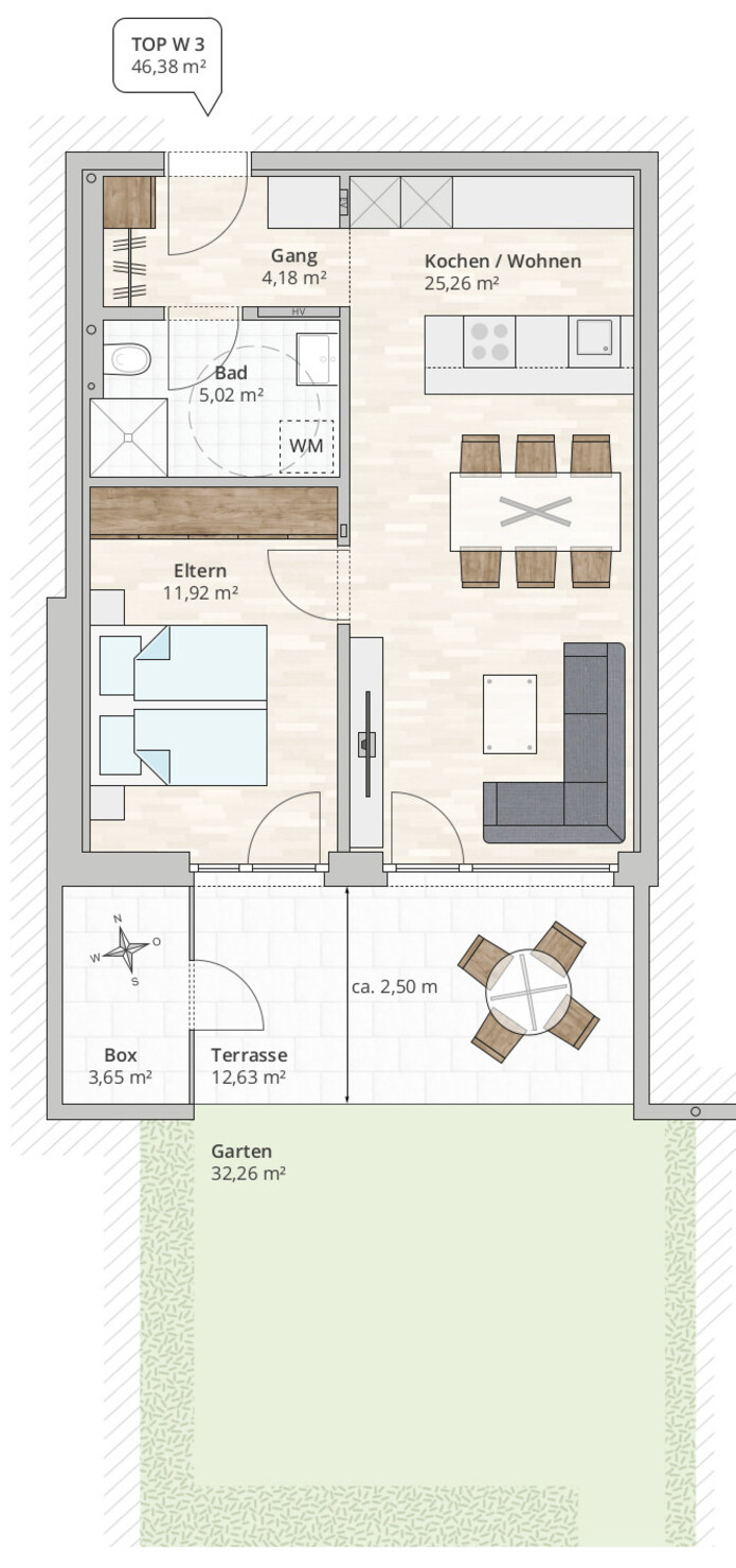 2-Zi-Gartenwohnung TOP 3 in Rankweil-Brederis, Korngasse 5
