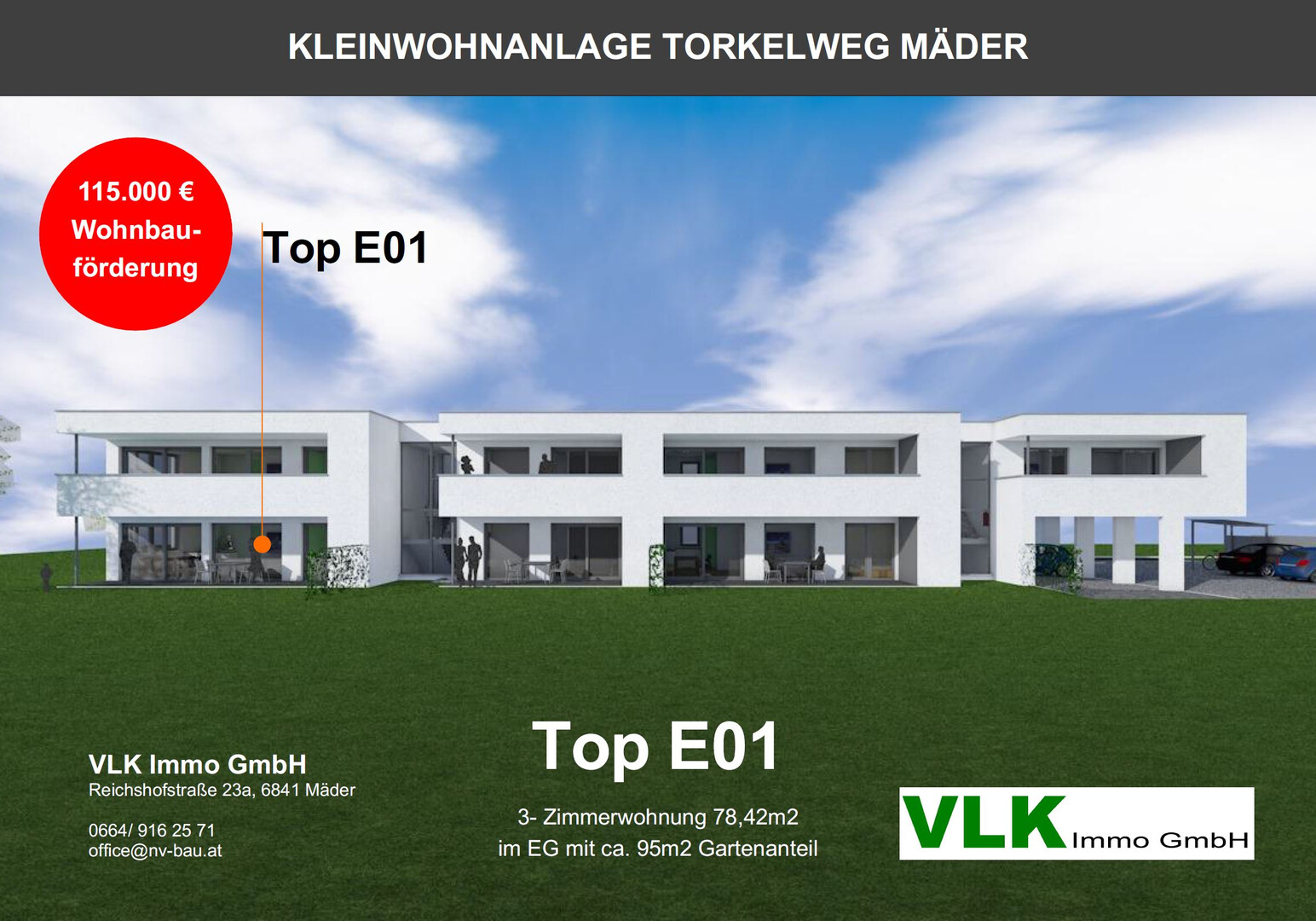 Diese moderne Gartenwohnung befindet sich in einer ruhigen Lage am Torkelweg 10e in Mäder und bietet eine Wohnfläche von 78,42 m².
