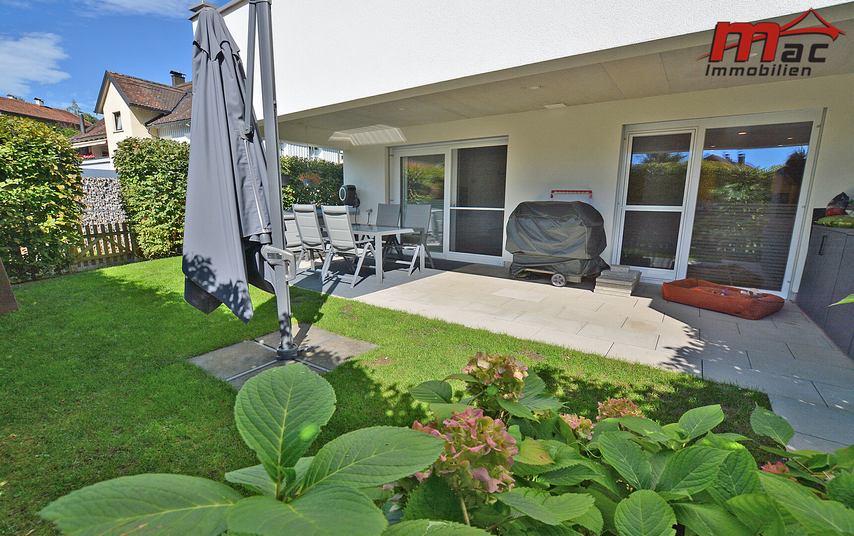 In sonniger Lage wird diese neuwertige 4-Zimmer-Gartenwohnung mit großem Privatgarten und hochwertiger Ausstattung zum Kauf angeboten.