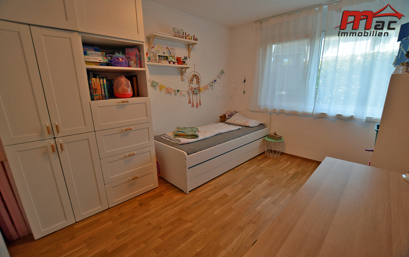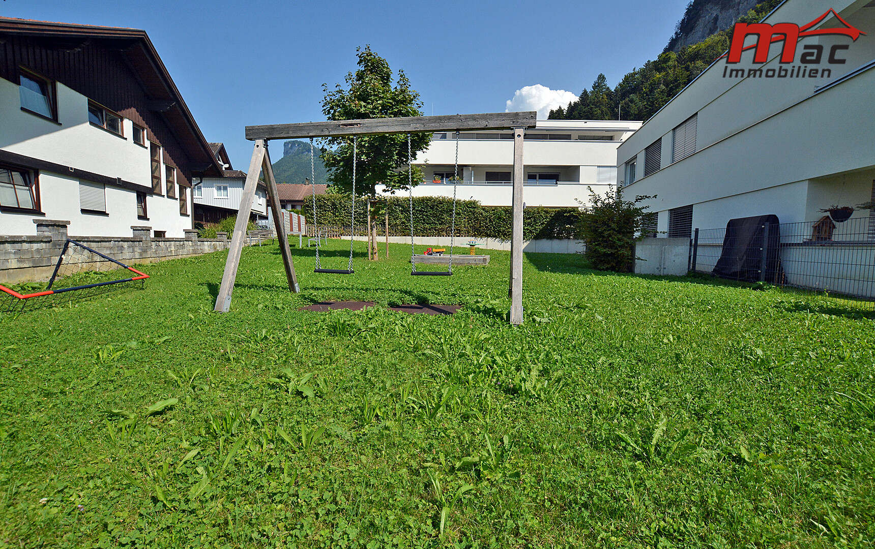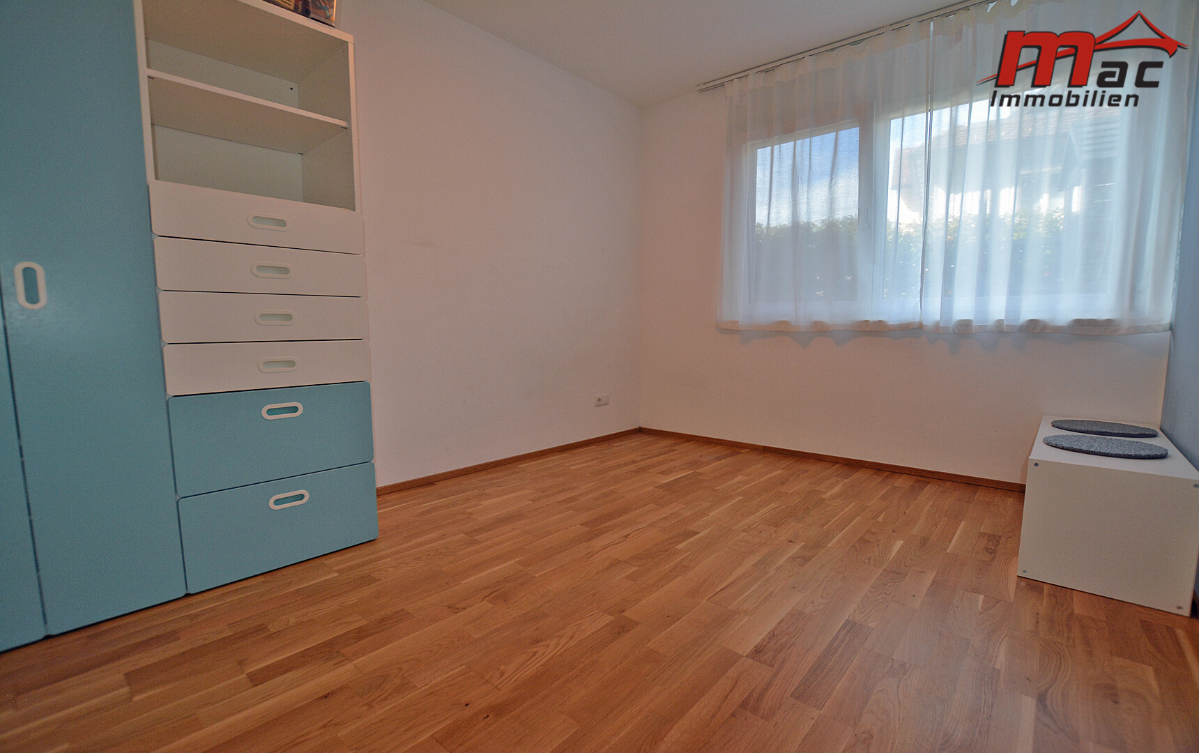 Der über 132 m² große Privatgarten umgibt drei Seiten der Wohnung und bietet maximale Privatsphäre, direkten Zugang zum allgemeinen Spielplatz der Wohnanlage sowie einen seitlichen Zugang in den Privatgarten.