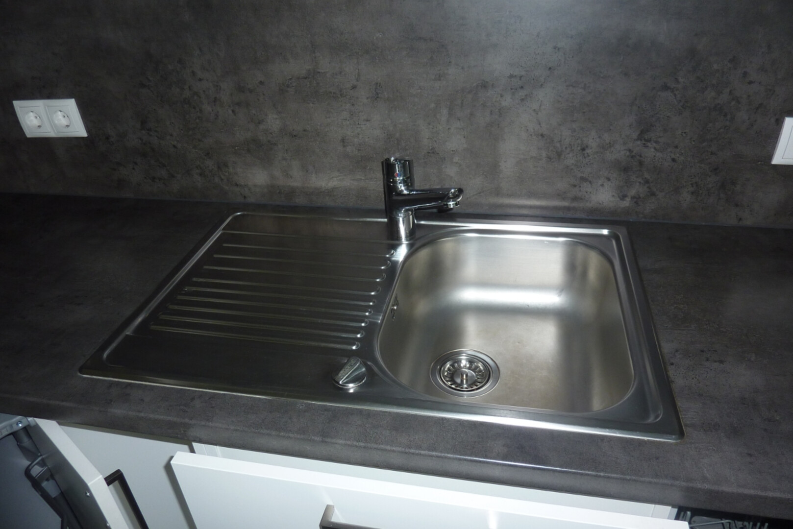 - Einbauküche in Vollausstattung mit Geschirrspüler und Kühlschrank mit Gefrierfach