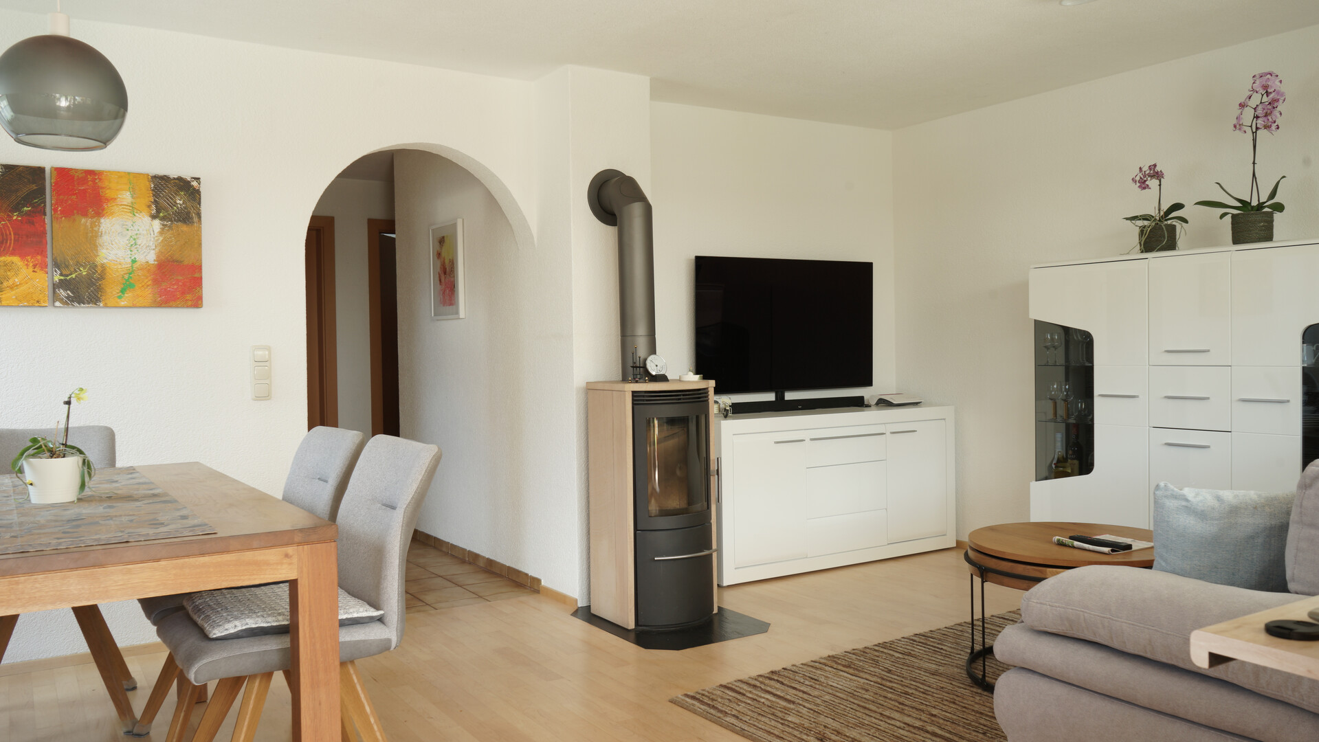- Holzofen im Wohnzimmer (gewartet, funktionsfähig)