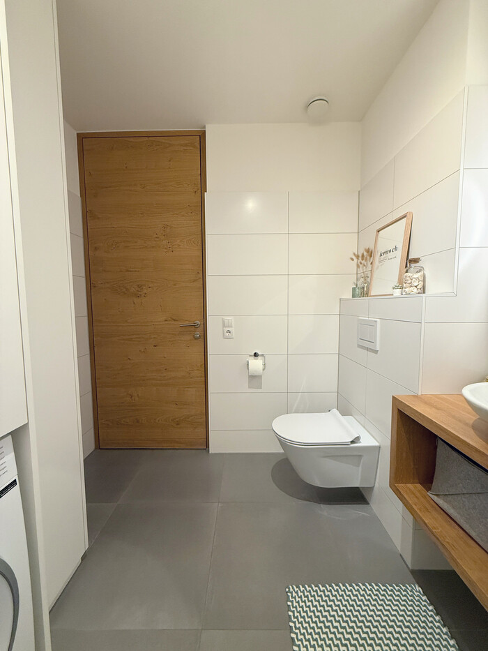 Die Wohnung wurde 2018 von Müller Wohnbau in massiver Bauweise erbaut und befindet sich in einer kleinen, teils geschindelten Wohnanlage mit nur 16 Einheiten. Sie ist mit einer Tiefgarage, großzügigem Fahrradraum und massiv gebauten Kellerabteilen ausgestattet. Das eigene Kellerabteil hat geräumige 8,16 m2. Eine Pelletsheizung, Solaranlage und eine kontrollierte Be- und Entlüftung helfen, die Heizkosten niedrig zu halten. Die kontrollierte Be- und Entlüftung sorgt zusätzlich für eine hohe Luftqualität in der ganzen Wohnung.