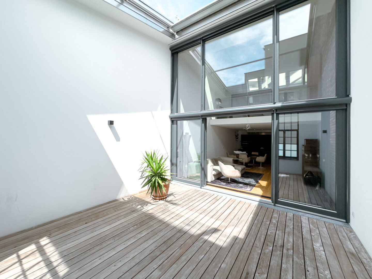 Ein besonderes Highlight ist der private Innenhof mit einer ca. 23,58 m² großen Freiluftterrasse – ideal für entspannte Stunden im Freien. Großzügige Hebeschiebetüren mit beidseitiger Öffnung schaffen einen fließenden Übergang zwischen Innen- und Außenbereich und lassen viel Tageslicht herein. Die Ausstattung der Wohnung lässt keine Wünsche offen: Die hochwertige Küche sowie die Garderobe stammen vom renommierten Hersteller Poliform. Zwischenwände verkleidet mit echtem Ziegelmauerwerk, stilvolle Bodeneinbauleuchten und viele liebevolle Details sorgen für ein außergewöhnliches Wohnambiente.