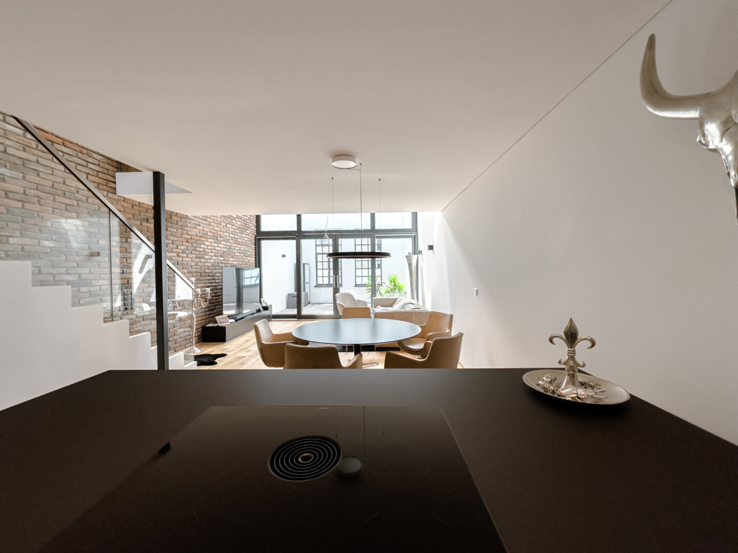 Das Ergebnis ist eine harmonische Verbindung aus historischem Industriecharme und modernem Wohnkomfort. Die großzügige Wohnfläche von ca. 112,15 m² (inkl. einer kleinen Dachschräge) bietet ein offenes Raumgefühl über zwei Ebenen, verbunden durch Holzbalken-Zwischendecken, die den Charakter des Lofts stilvoll unterstreichen.