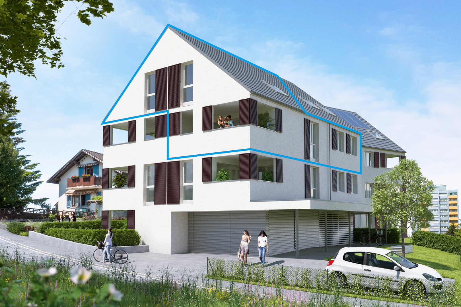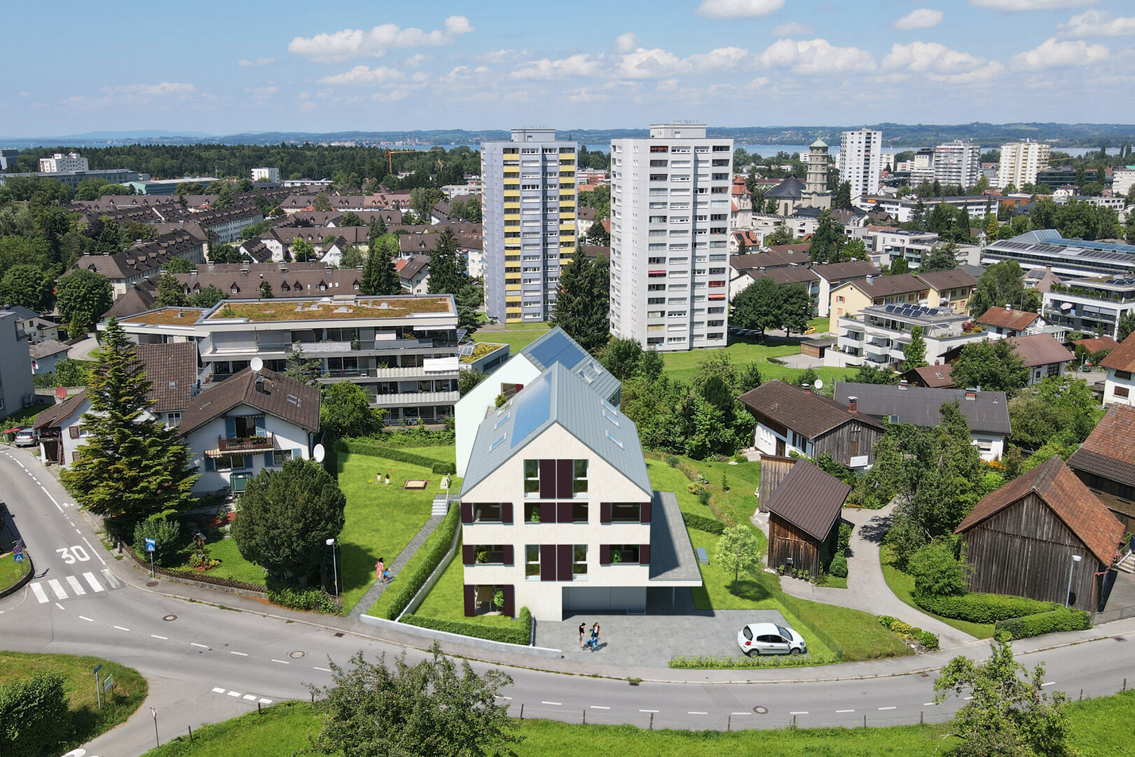 In ausgesuchter Lage "Am Stein" in Bregenz entsteht ein Kleinprojekt mit 2 verbundenen Baukörpern, mit jeweils 5 bzw. 6 Einheiten. Individualität und Qualität werden hier großgeschrieben. Alle Wohnungen verfügen über unterschiedliche Grundrisse und Besonderheiten. Das Architekturkonzept trägt die Handschrift der Architekturwerkstatt Hugo Dworzak und überzeugt durch hochwertige Materialauswahl. Die Wohnungen erreichen Sie trockenen Fußes über den großzügig überdachten Eingangsbereich. Durch das repräsentative, helle Stiegenhaus, das mit einer außergewöhnlichen Blechummantelung vor neugierigen Blicken schützt, gelangen Sie in Ihre eigenen 4 Wände. Falls Sie mit dem Auto nach Hause kommen, genießen Sie eine ebenerdige Zufahrt in den integrierten Autolift - somit ärgern Sie sich nie wieder über vereiste oder enge Tiefgarageneinfahrten! Sollten Sie mit dem E-Bike die Umgebung erkunden wollen, so finden Sie dieses ebenso bequem im großzügigen Fahrradraum im Erdgeschoss. Das Raumprogramm ist äußerst vielfältig: 2-, 3-, 4- und 5-Zimmer-Wohnungen stehen zur Auswahl. Die massive Bauweise mit gebranntem Ziegel sorgt traditionell für ein angenehmes Raumklima und das Heizsystem über Luftwärmepumpe schafft im Winter angenehme Wärme. Das gesamte Haus ist barrierefrei ausgeführt. Die Tageslicht-Bäder sind alle über eigene Fenster belüftet. Je nach Wohnungsgröße verfügen diese nicht nur über eine Dusche, sondern auch über eine Badewanne. Zusätzliche Freiräume erhalten Sie durch schöne Loggien mit herrlichen Sichtachsen sowie riesige Gärten für die Wohnungen im Erdgeschoss. Wenn Sie sich ein außergewöhnliches Zuhause in bester Lage schaffen möchten, dann sind hier die besten Voraussetzungen dafür gegeben. Individuell geplante Wohneinheiten und eine große Auswahl an Ausstattungsmöglichkeiten lassen Ihnen einen großen Gestaltungsspielraum in der Ausführung Ihrer eigenen 4 Wände.