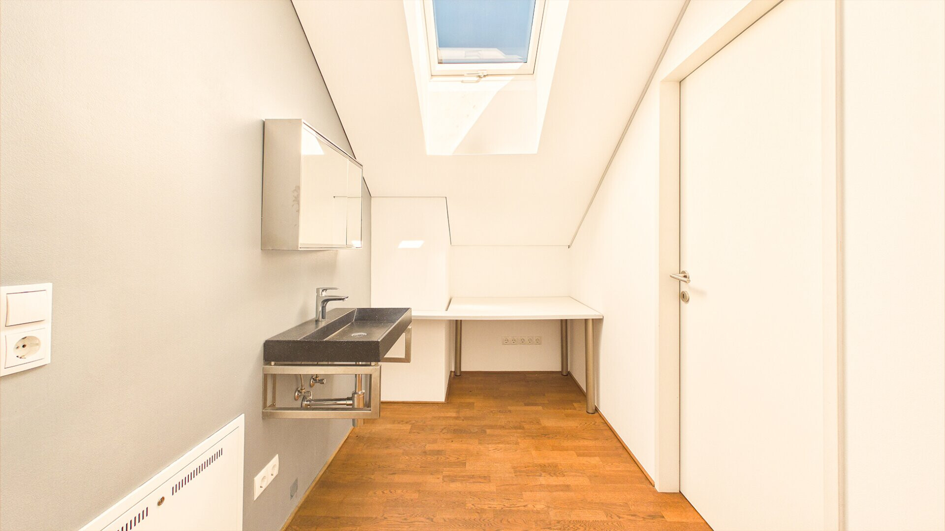 Im Dachgeschoss befinden sich zwei Zimmer. Eines davon bietet sich ideal als Schlafzimmer an. Das zweite kann vielseitig genutzt werden und eignet sich besonders gut als Gästezimmer, da der angrenzende Vorraum bereits mit einem Waschbecken ausgestattet ist und sich bei Bedarf zu einem eigenen Badezimmer ausbauen lässt. Beide Zimmer verfügen über einen eigenen Balkon, der eine private Außenfläche und einen angenehmen Ausblick bietet.