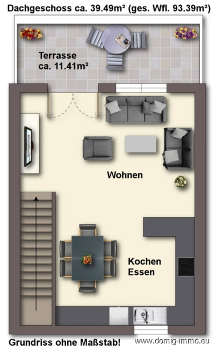 Die helle loftartige Wohnung ist aufgeteilt auf 2 Etagen mit ca. 93m² Wohnfläche und befindet sich im 1.Ober- und Dachgeschoss. Über eine Treppe gelangt man zum oberen Stockwerk.