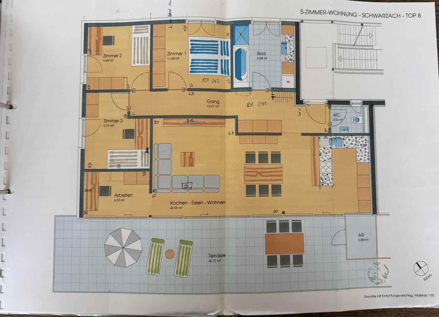 Die Wohnung verfügt über eine Wohnfläche von ca 104 Quadratmetern und bietet ein einzigartiges Wohngefühl. Zu den besonderen Merkmalen gehört der großzügige Balkon mit 46,70 Quadratmetern, ideal für entspannte Abende im Freien. Zudem gibt es einen praktischen Abstellraum mit 2,88 Quadratmetern, zwei geräumige Kellerabteile mit insgesamt 11,90 Quadratmetern und einen Fahrradabstellraum mit 20,5 Quadratmetern.