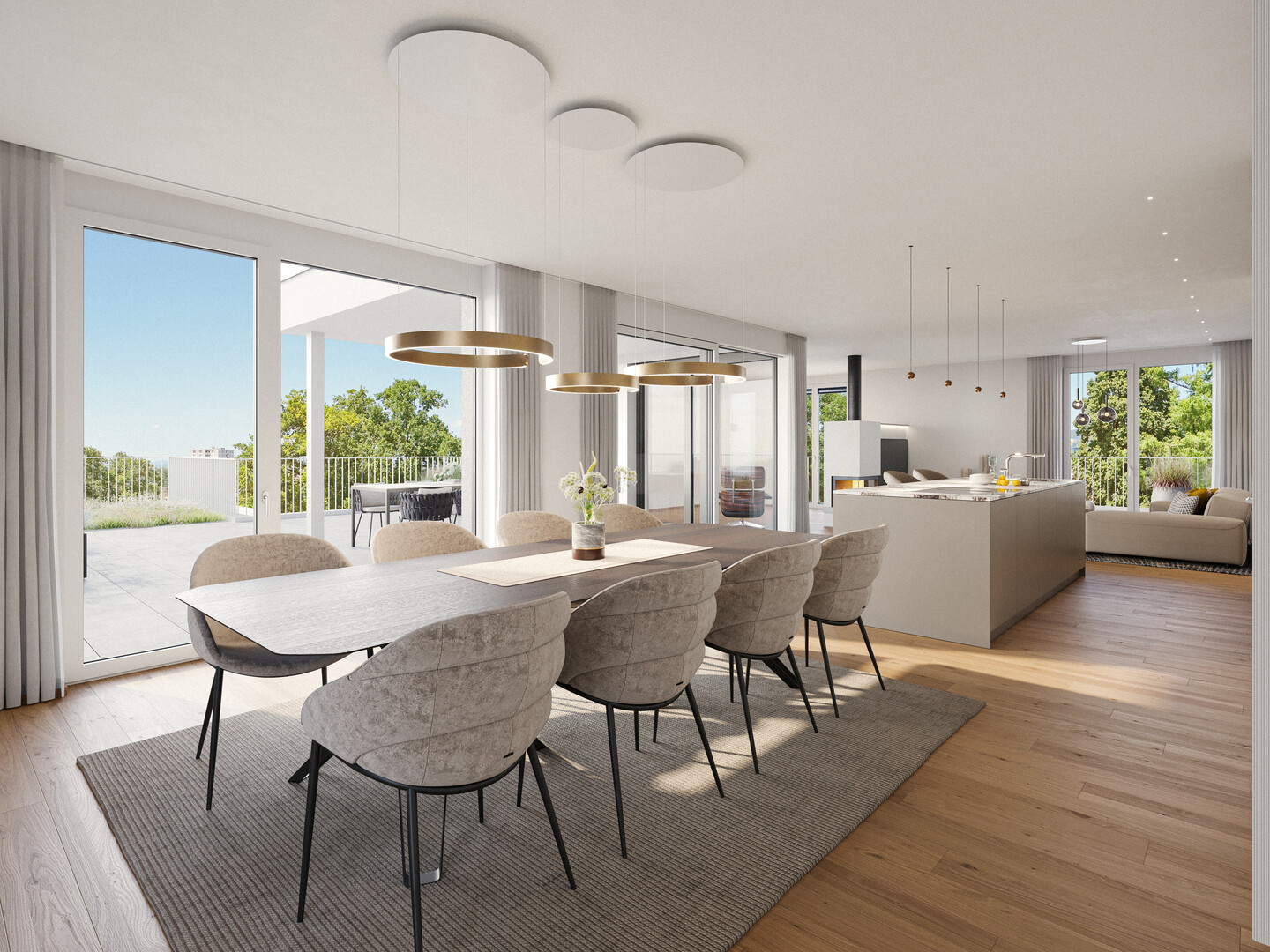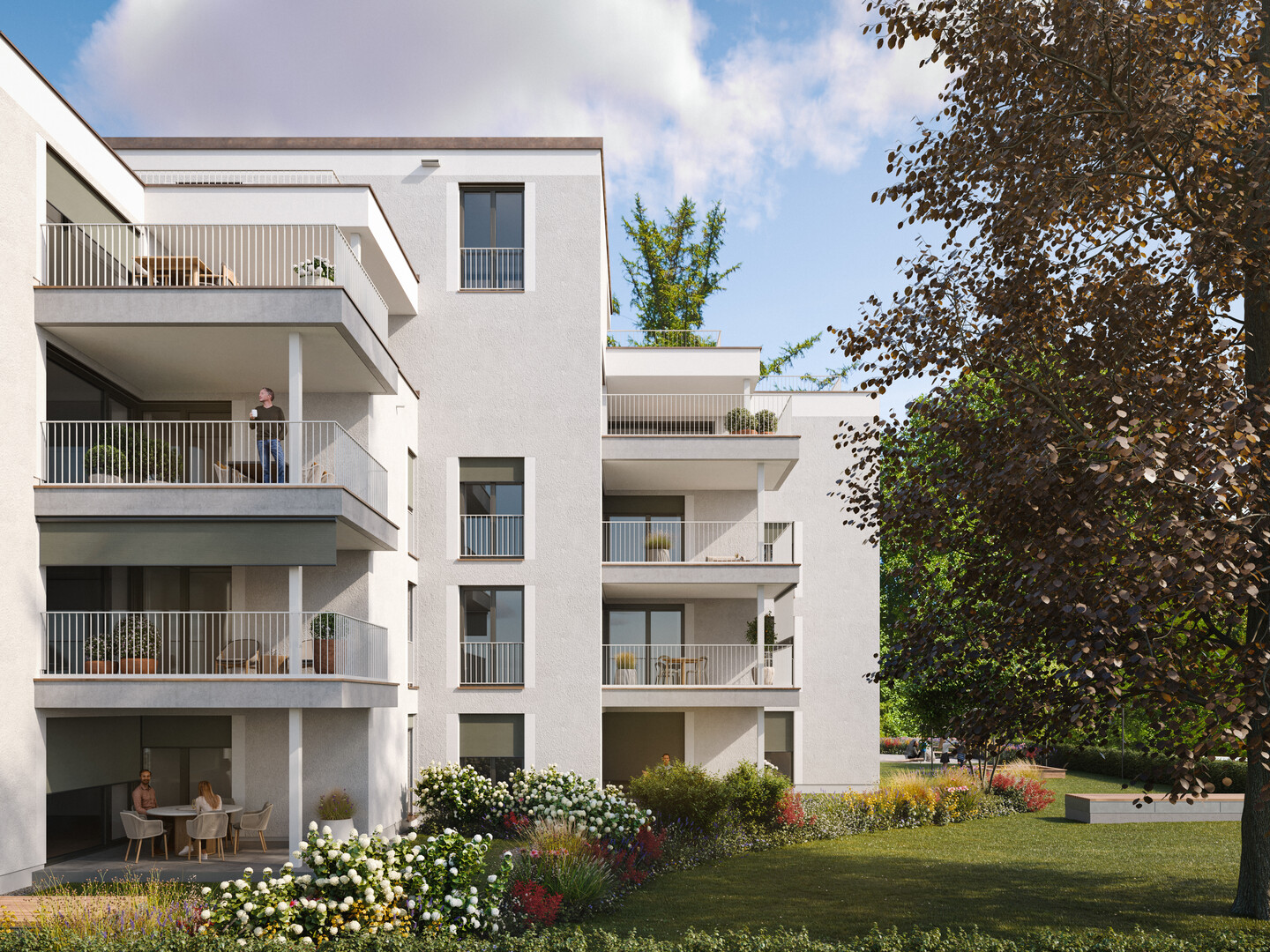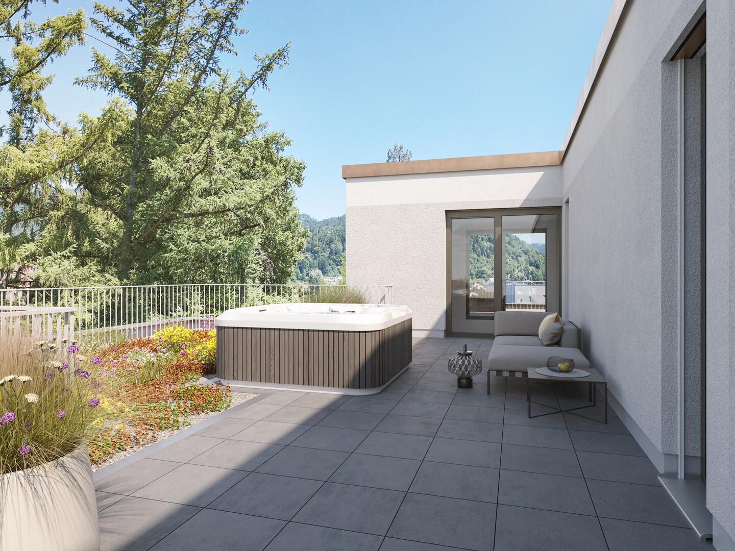 - Terrassen und Privatgärten sowie raumhohe Verglasung