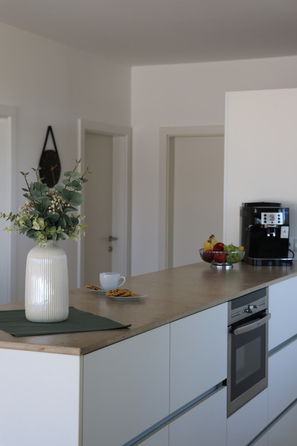 Der lichtdurchflutete Wohn- und Essbereich bildet das Herzstück dieses Penthouses. Die bodentiefen Fenster eröffnen Ihnen nicht nur einen fantastischen Ausblick, sondern schaffen in Kombination mit edlen Parkett- und Fliesenböden eine Atmosphäre von zeitloser Eleganz.