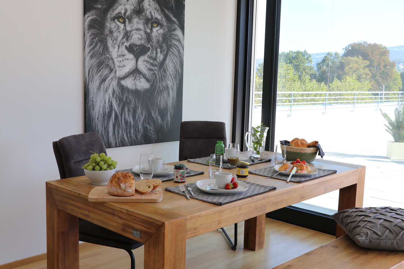 Das absolute Highlight: Eine großzügige Dachterrasse von ca. 149,29 m², die Ihnen einen atemberaubenden Panoramablick von Dornbirn bis nach Bregenz bietet. Hier genießen Sie Ihre Privatsphäre in vollen Zügen – ob bei einem Glas Champagner oder einem entspannten Abendessen unter freiem Himmel. Ein zusätzlicher Abstellraum auf der Terrasse sorgt für praktischen Stauraum.