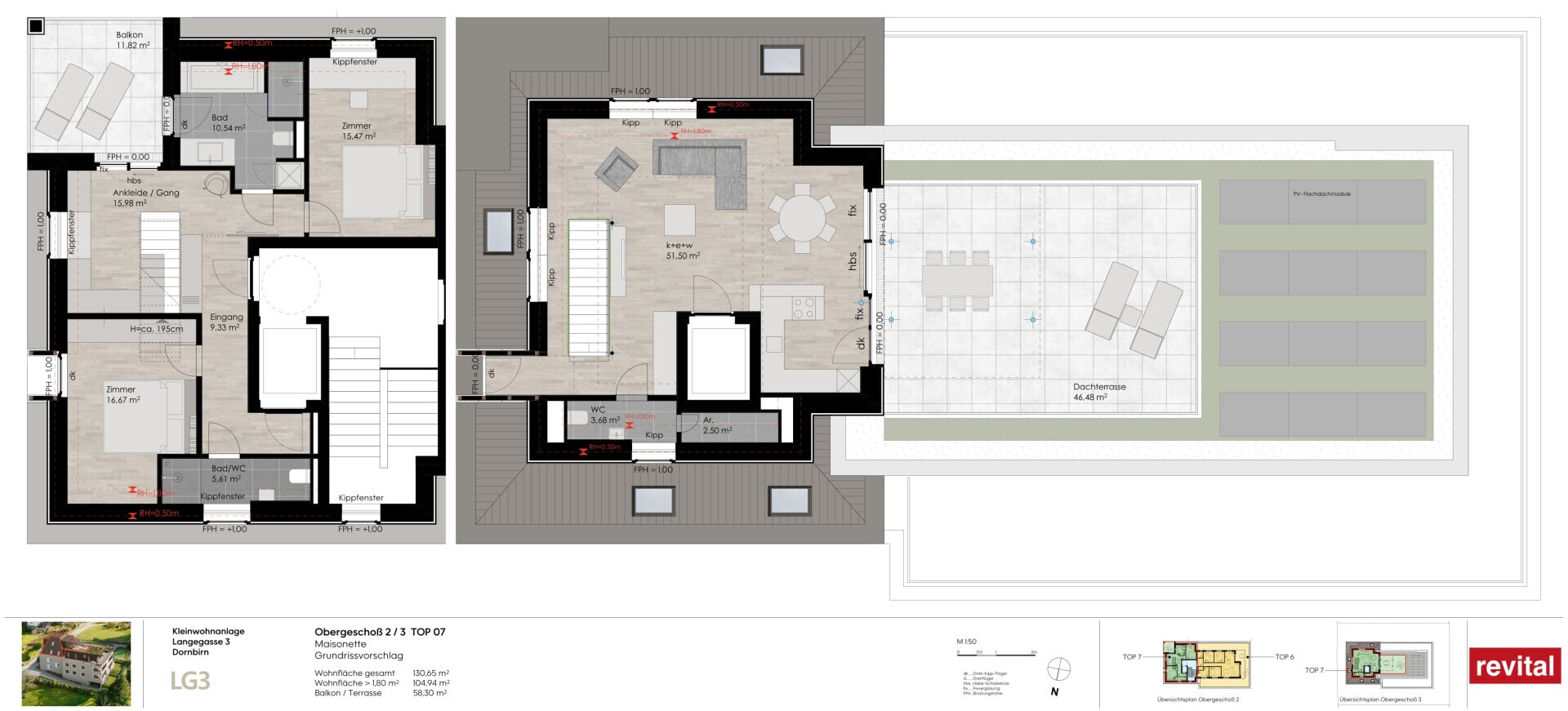Das zweigeschossige Penthouse mit 131 m² Wohnfläche lässt sich nach Ihren Wünschen ausbauen. Sie gelangen komfortabel mit dem Lift direkt in Ihre Wohnung. Im Dachgeschoss eröffnet sich Ihnen im Wohn-/Essbereich ein fantastisches Panorama auf Dornbirn, den Karren und den Dornbirner First. Mit über 50 m² Wohnfläche bilden dieser Raum und die teilweise überdachten Dachterrasse mit 47 m² das Herzstück der Wohnung und lassen keine Wünsche offen. Im unteren Geschoss befinden sich Ihre privaten Schlafräume, Badezimmer/WC und ein kleiner überdachter Balkon mit 12 m².