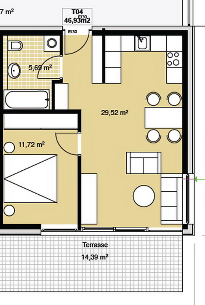 Die 2 Zimmer Wohnung befindet sich im UG der klein-Wohnanlage und ist wie folgt aufgeteilt: