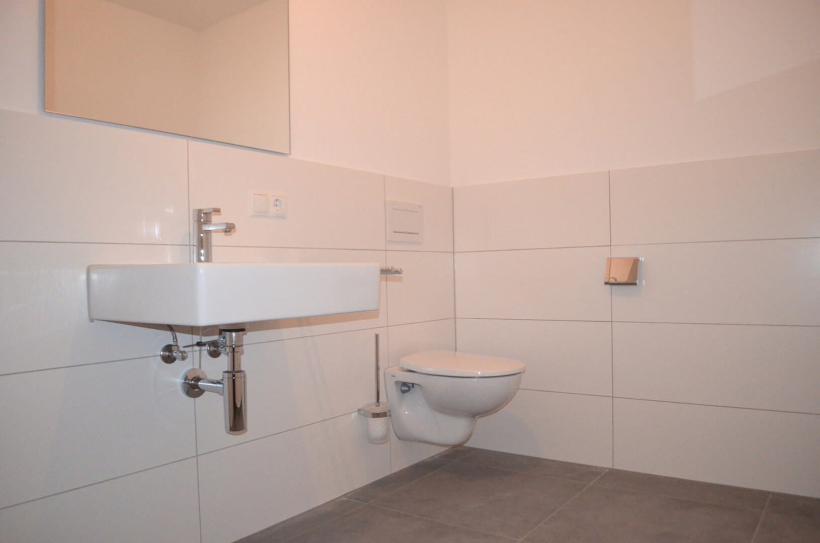 Die ideale Raumaufteilung und der offene Wohn-/Essbereich schaffen eine wunderbare Wohnatmosphäre. Neben dem Parkettboden in den Wohn- und Schlafräumen wurde das Badezimmer mit weißen Wandfliesen und dunklen Bodenfliesen versehen. Außerdem bringt die Fußbodenheizung einen weiteren gemütlichen Aspekt mit sich.
