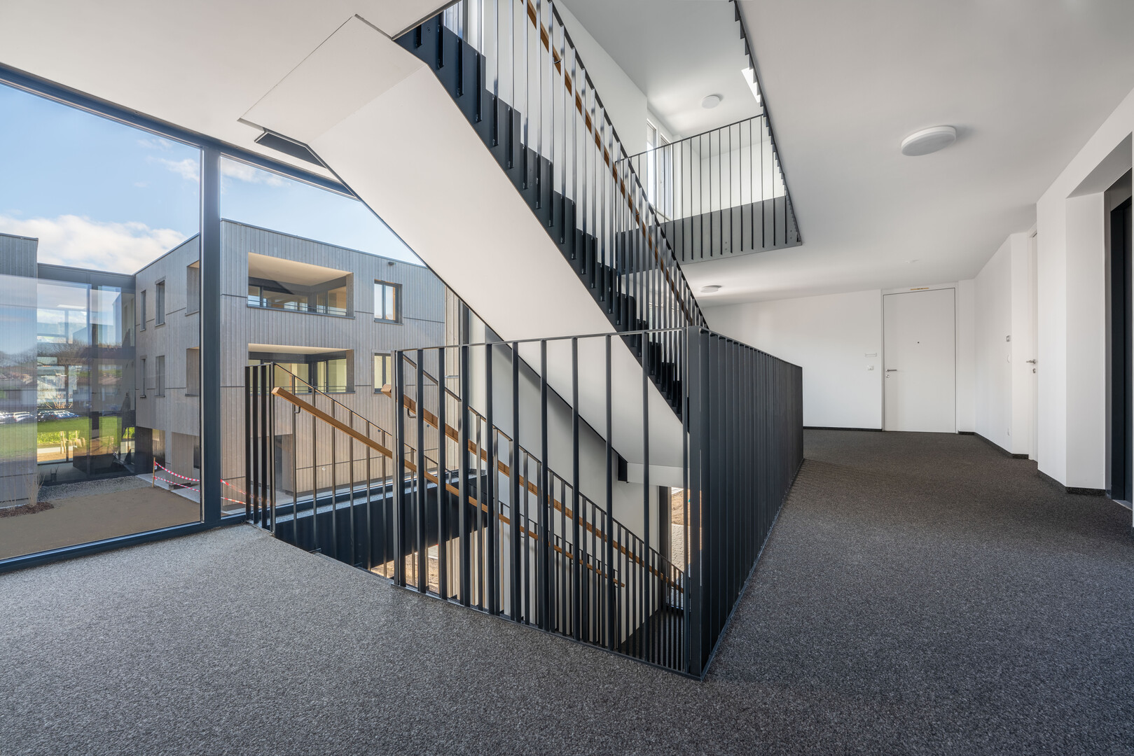 Die verkehrstechnische Erschließung an der Nordseite der Liegenschaft ermöglicht die Gestaltung von großzügigen Freiraum- und Begegnungszonen für alle Generationen zwischen den Gebäuden.