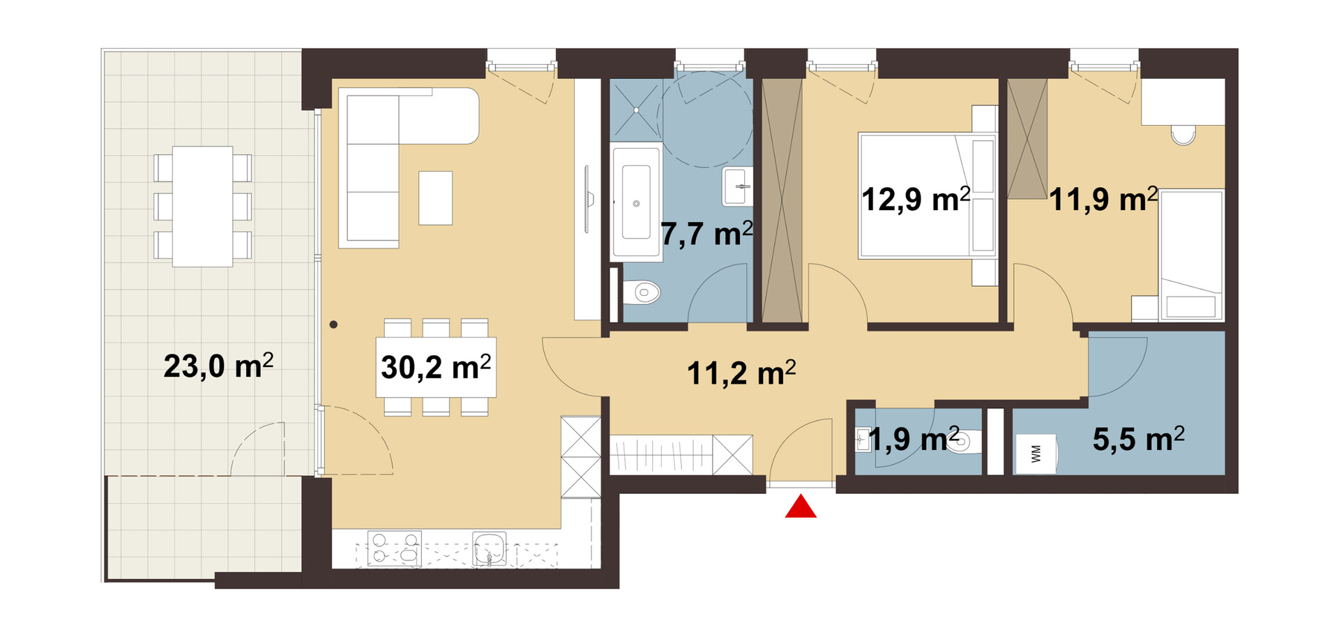 Ob Zeit für sich oder gemeinsame Stunden – hier findet beides Platz. Die zwei zusätzlichen Zimmer können ganz nach Bedarf gestaltet werden: ein ruhiges Schlafzimmer, ein lebendiges Kinderzimmer oder ein kreativer Arbeitsbereich. Die überdachte Terrasse macht den Außenbereich zur zweiten Wohnzone – geschützt, gemütlich und immer bereit für eine kleine Auszeit.