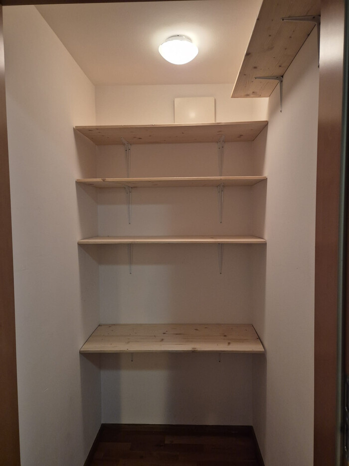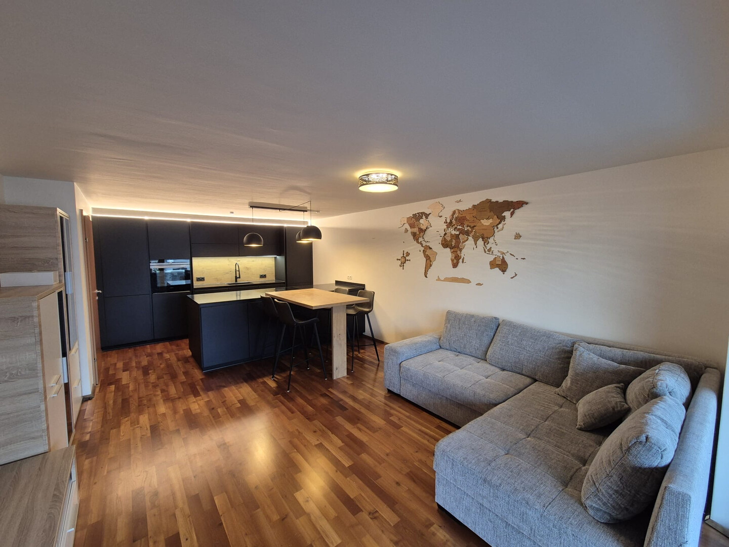 Im Jahr 2021 wurde die Wohnung mit hochwertigen Einbaukästen im Garderobenbereich ausgestattet, um den Stauraumbedarf zu decken. Zudem wurde 2021 eine moderne Wohnküche mit Kochinsel und dimmbarer Deckenbeleuchtung eingebaut.
