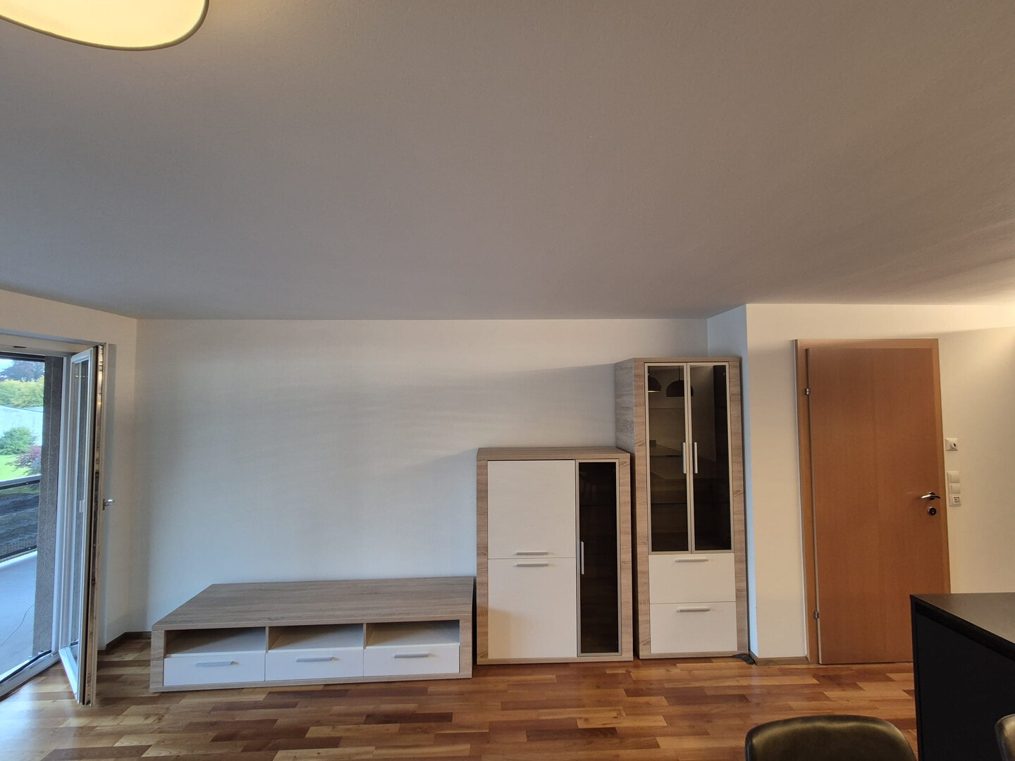 Neben dem integrierten Esstisch mit dazugehörigen Stühlen können nach Vereinbarung auch die Wohnwand sowie weiteres Mobiliar übernommen werden.