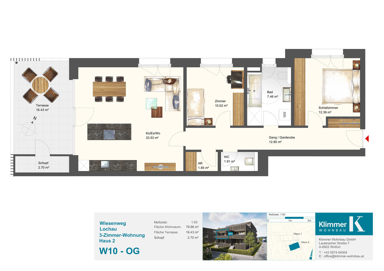 In Ihrem neuen Zuhause im Wiesenweg in Lochau - einem idyllischen Ort am Bodensee - lassen sich Leben und Wohnen eng miteinander verbinden. Die moderne und innovative Wohnanlage liegt in einer ruhigen Wohnlage am Ende einer Sackgasse und fügt sich harmonisch in die natürliche Umgebung ein. Sie besteht aus zwei Gebäuden mit 13 sehr schönen 2-, 3- und 4-Zimmerwohnungen und einer gemeinsamen Tiefgarage mit 17 Autoeinstellplätzen. Ihr Zuhause bietet Ihnen pures wohlfühlen und schenkt Ihnen Lebensqualität durch Komfort und Nähe zur Natur und Infrastruktur.