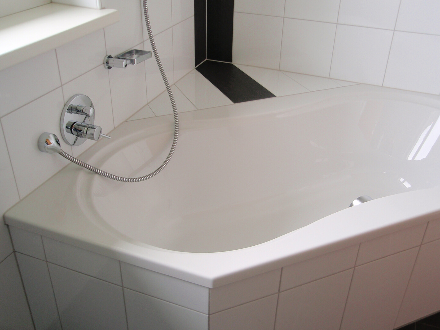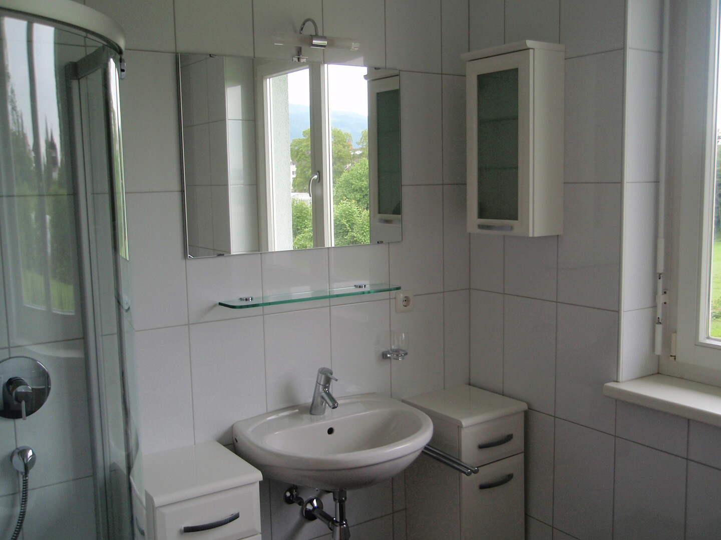 - Badezimmer, Dusche, Eck-Badewanne, Anschlüsse: WM, Trockner
