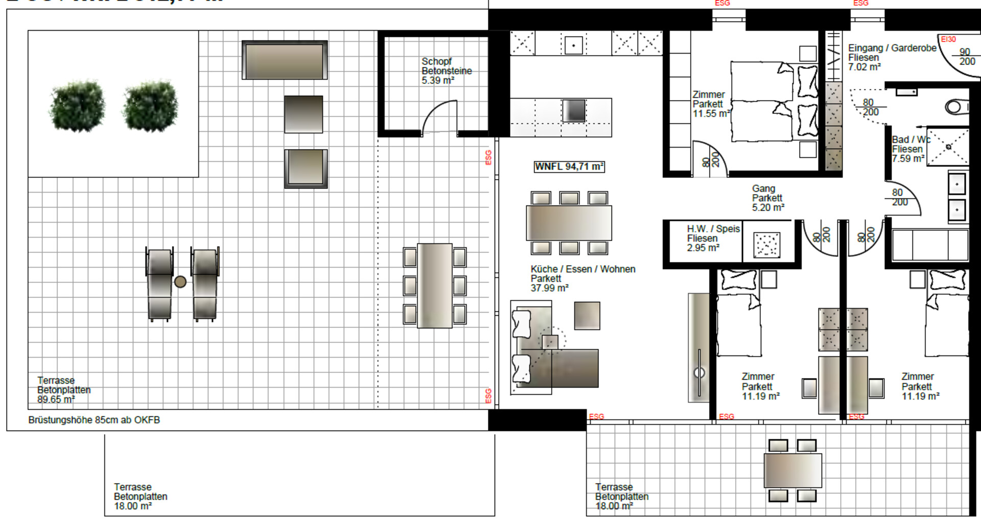 Selbstverständlich sind allen Wohnungen Kellerabteile zugeordnet und verfügen die Wohnungen über einen Tiefgaragenplatz.