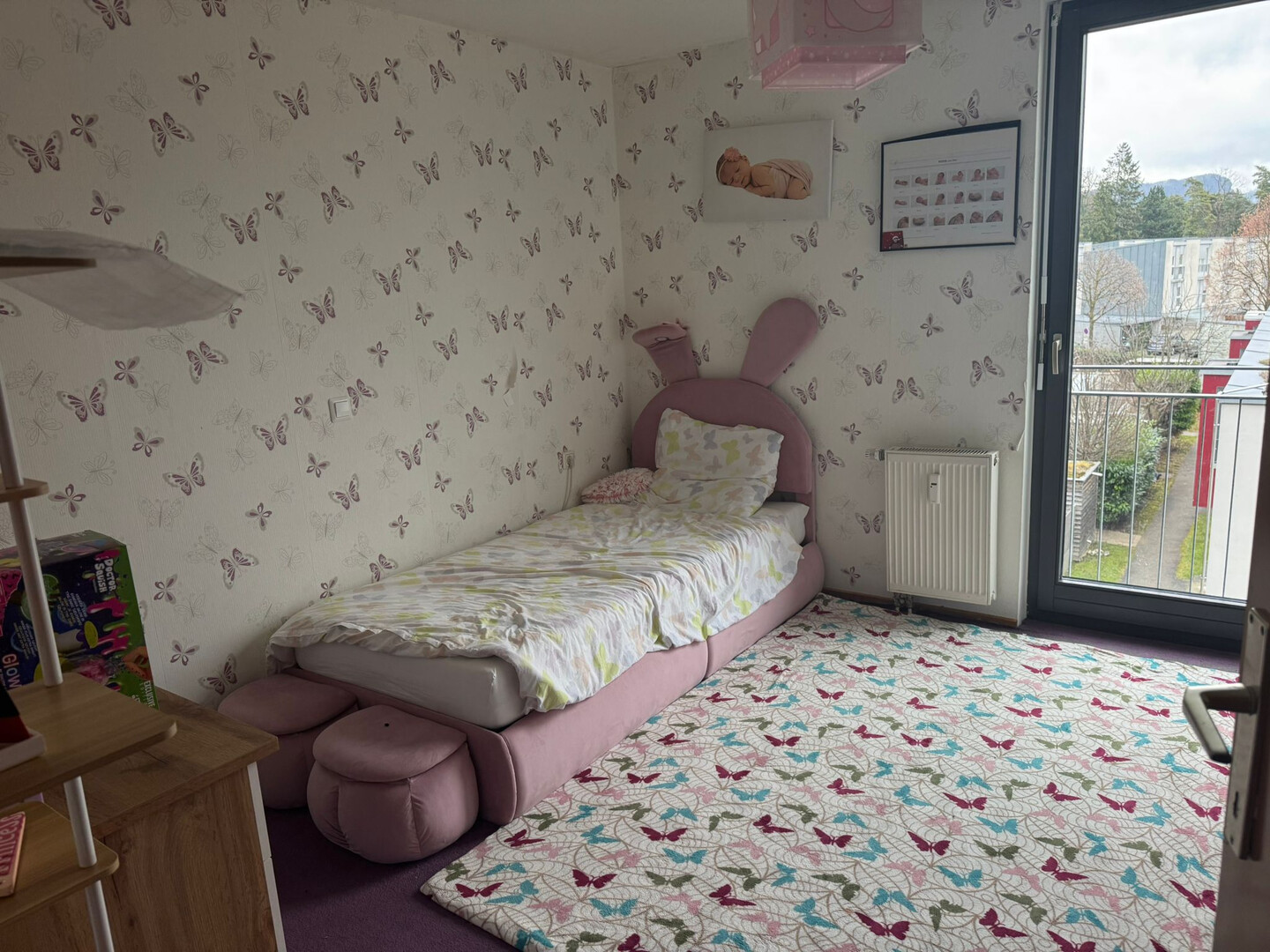 Die Wohnung befindet sich im 3. Stock und überzeugt durch einen durchdachten Grundriss und einem wunderschönen Ausblick. Zwei Schlafzimmer bieten ausreichend Platz zum Wohnen und Arbeiten. Ein Badezimmer sowie ein separates WC sorgen für zusätzlichen Komfort. Die Zimmer sind mit Parkett ausgestattet. Leider gibt es keinen Lift.