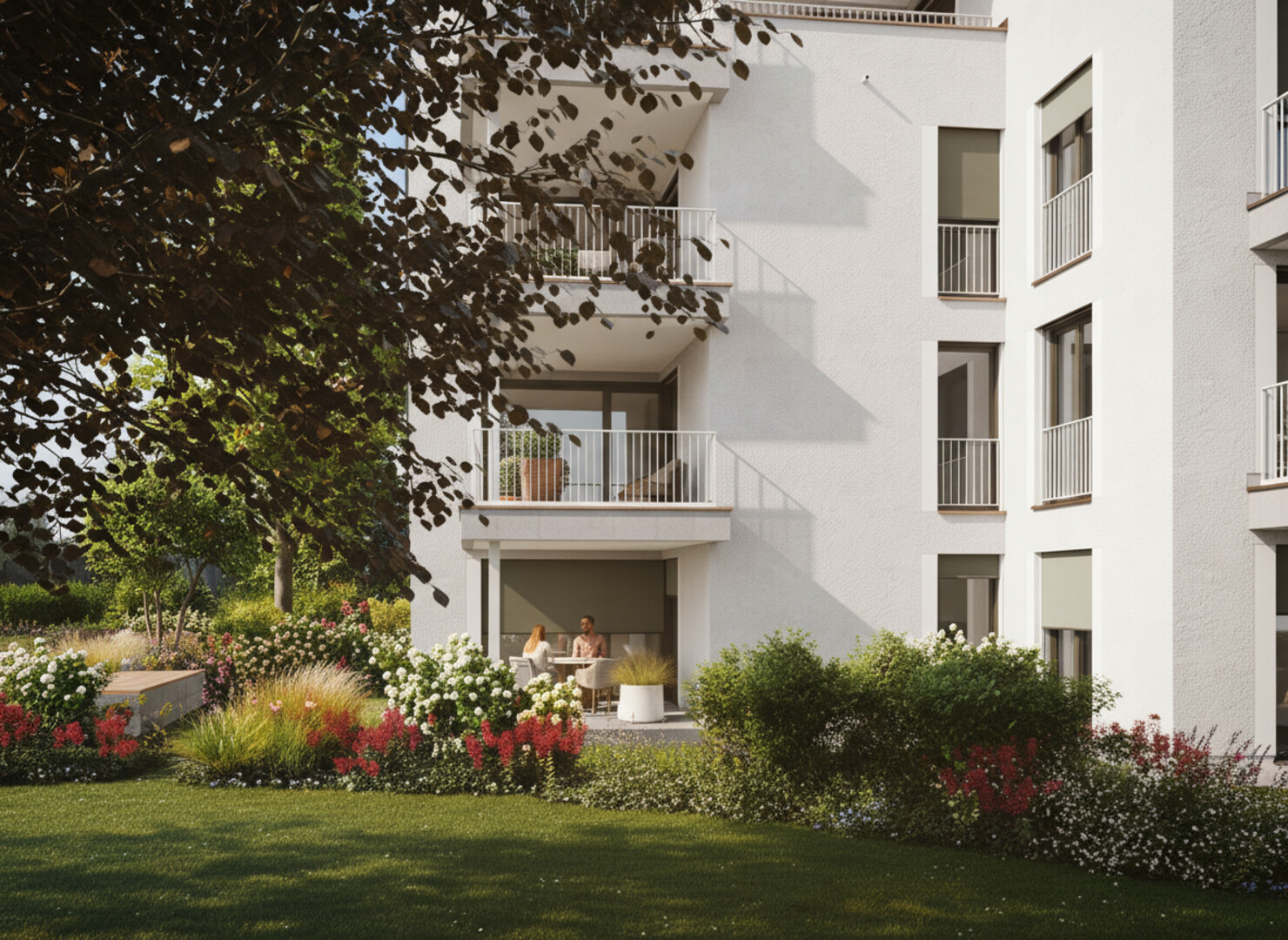 - Terrassen und Privatgärten sowie raumhohe Verglasung