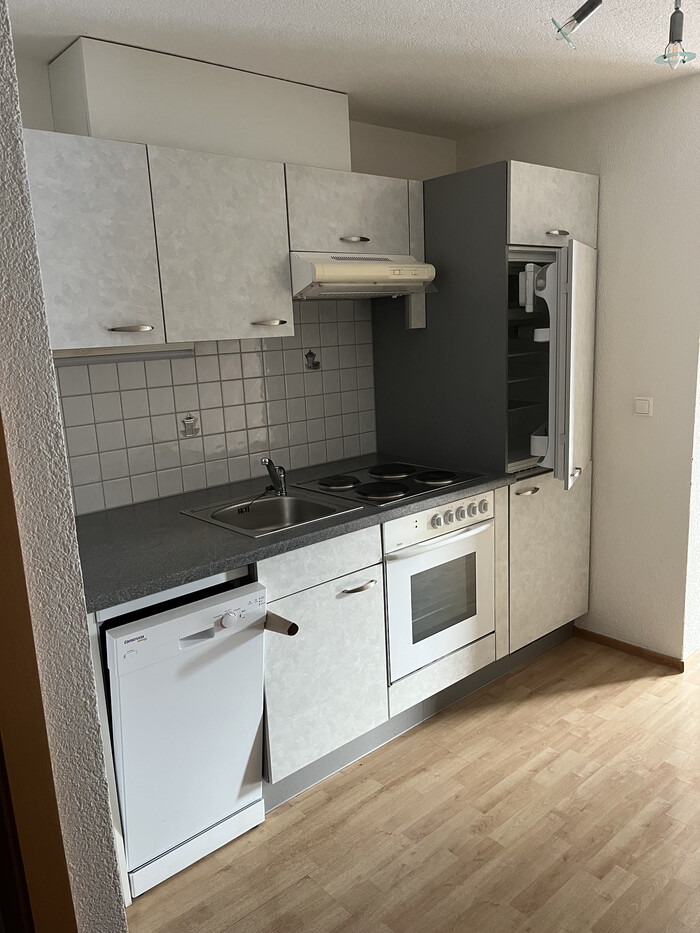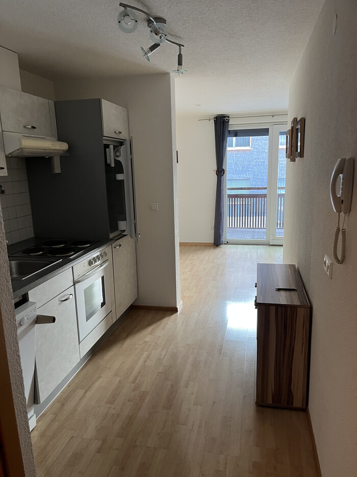 Ruhige Lage u. doch zentral, teilmöbliert, Wohnküche und separates Schlafzimmer, Bad/WC, Balkon südseitig, Abstellraum (mit Anschluss für eine Waschmaschine) Kellerabteil, Ski- u. Radkeller, Tiefgaragenplatz,