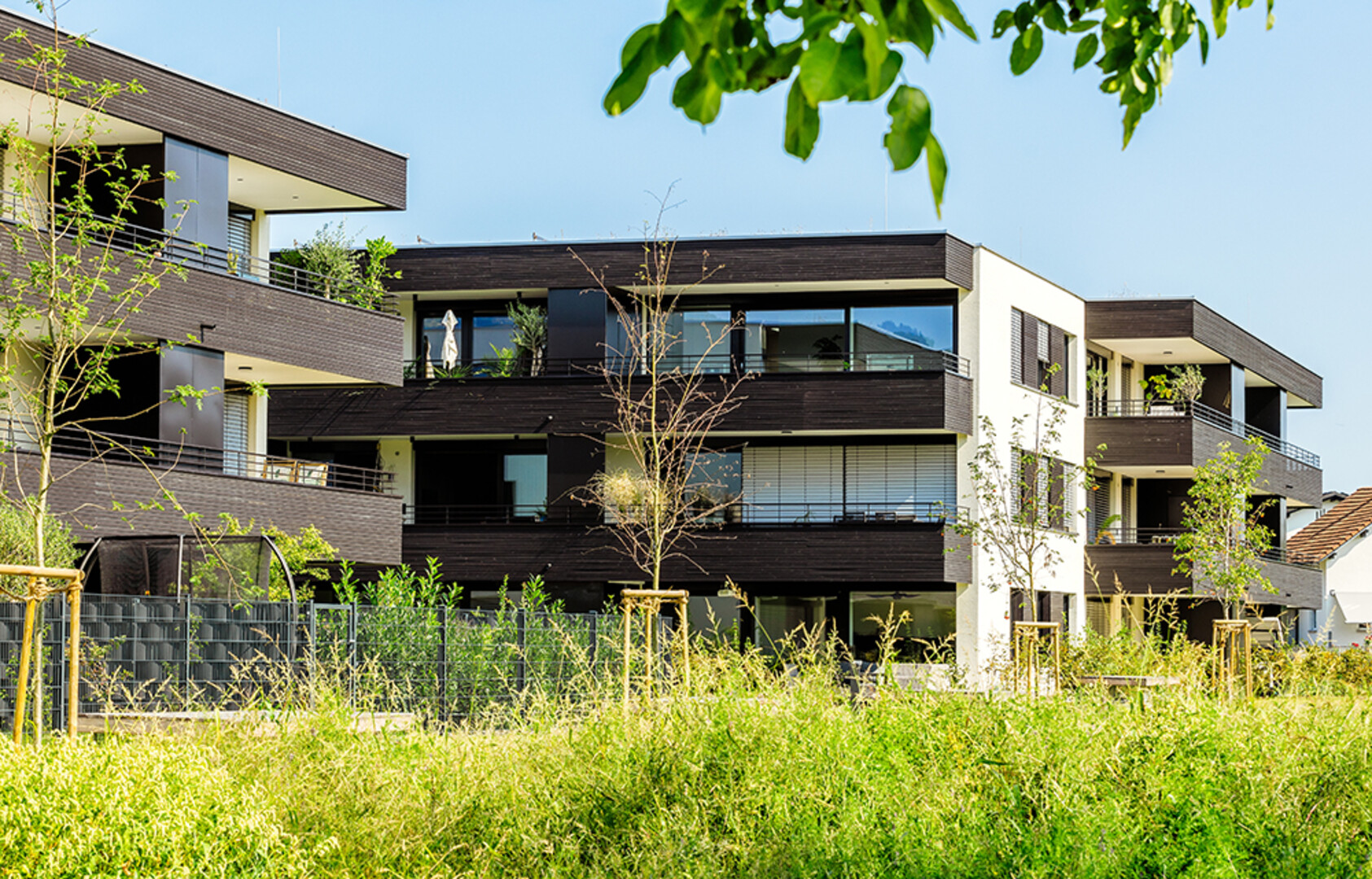 Das bereits fertiggestellte Projekt „Wohnen am Giessen“ bringt das Leben in Einklang – denn hier werden die Nähe zu wundervoller Natur und ein vielfältiges Gemeindeleben mit einem stimmigen Wohnkonzept in variantenreichen 2- bis 4-Zimmer Wohnungen kombiniert. Die beiden Baukörper des Wohnprojekts sind in äußerst ruhiger Lage in Höchst entstanden. Umrahmt von locker bebauter Nachbarschaft, Wiesen und einem kleinen Wasserlauf ziehen hier Idylle und Entschleunigung mit ein. Ein gemeinsamer Spielplatz im Osten sowie eine Grünzone auf der Südseite bieten hohe Aufenthaltsqualität. In der gemeinsamen Tiefgarage stehen ausreichend Stellplätze zur Verfügung.