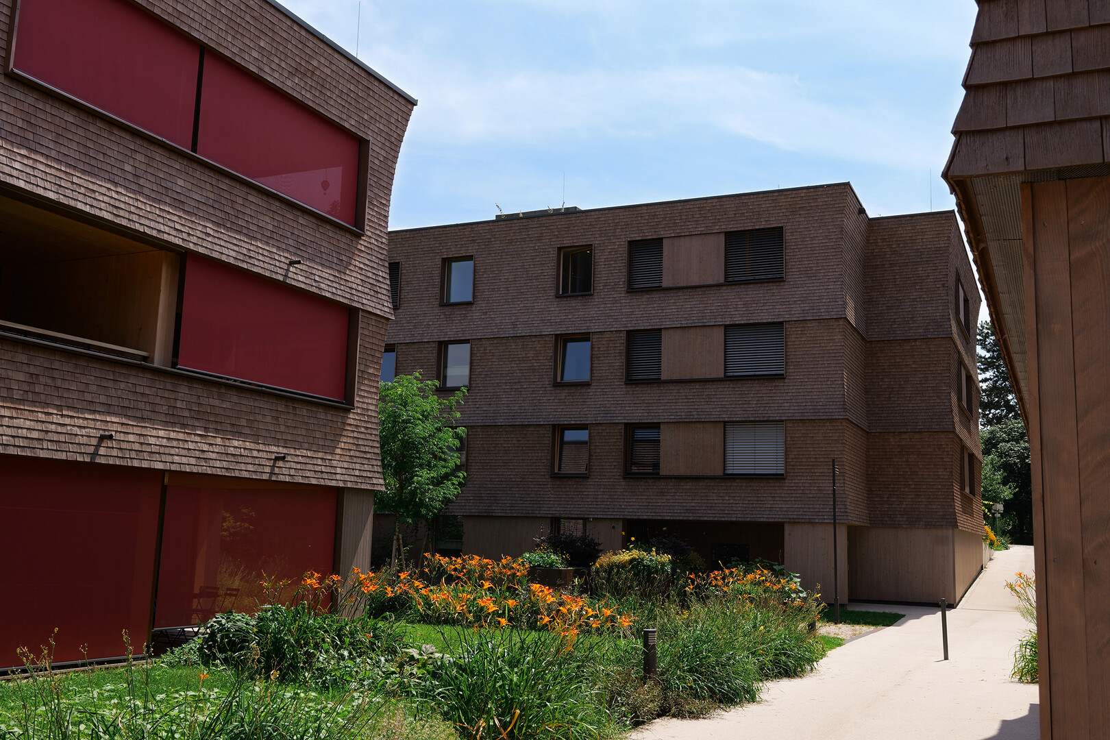 Im Herzen von Lochau, nicht unweit vom wunderschönen Bodensee, entstand diese hochwertige Wohnanlage. Gebaut von Menschen für Menschen, um in Gemeinschaft zu leben. Ein imposantes Projekt, welches dennoch Raum und Luft bietet. Ob Yoga im Park, Gärtnern im Hochbeet, oder Rückzugsort - für jeden ist etwas dabei.