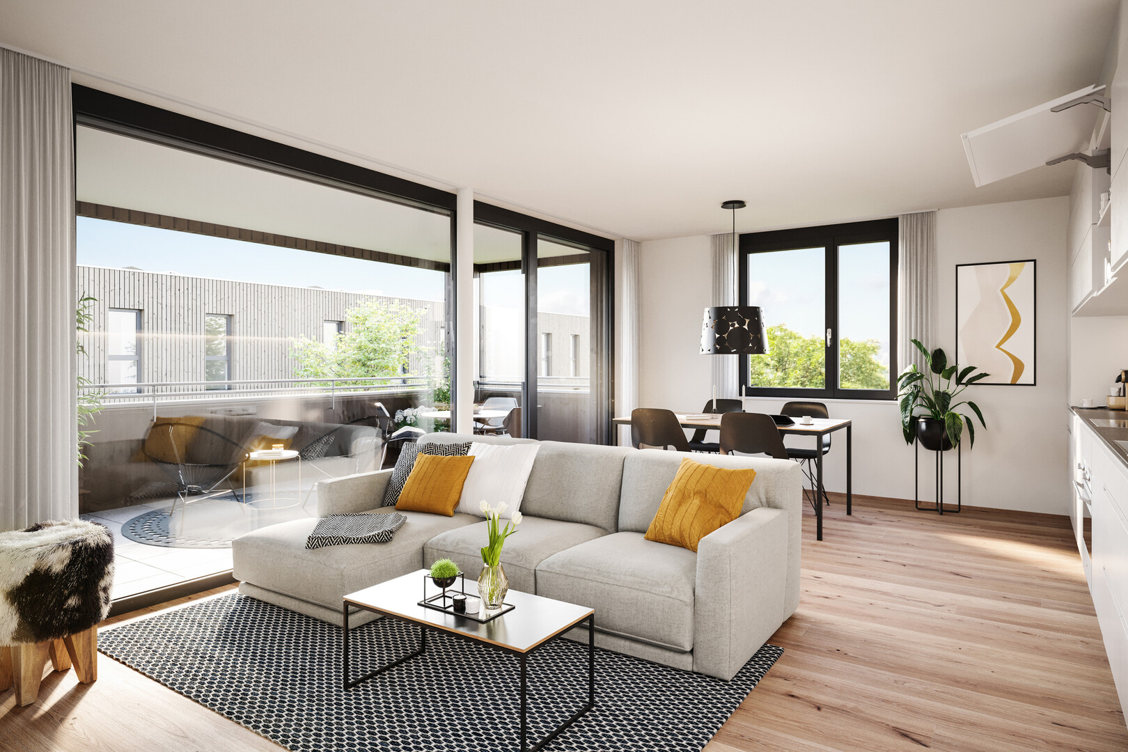 Die Terrassenwohnung begeistert mit einer überdachten Terrasse und einer hochwertigen Ausstattung: