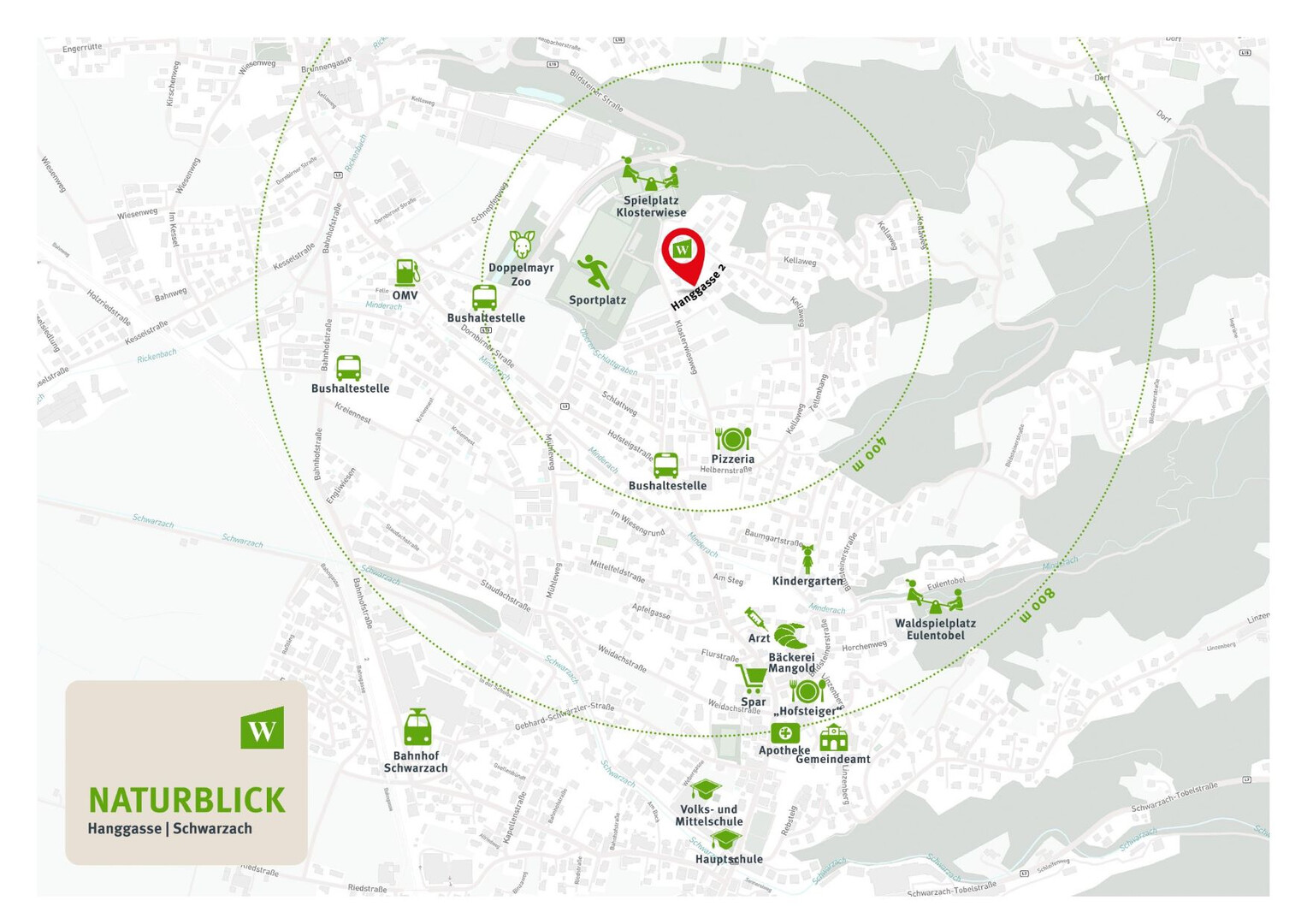 Schwarzach zeichnet sich durch seine ruhige und dennoch zentrale Lage aus, die sowohl naturverbundene als auch städtische Annehmlichkeiten vereint. Die Region bietet eine hervorragende Infrastruktur mit diversen Einkaufsmöglichkeiten, gastronomischen Angeboten und verschiedenen Freizeitaktivitäten. Schulen und Kinderbetreuungseinrichtungen sind ebenfalls in der Nähe, was die Lage besonders für Familien attraktiv macht.