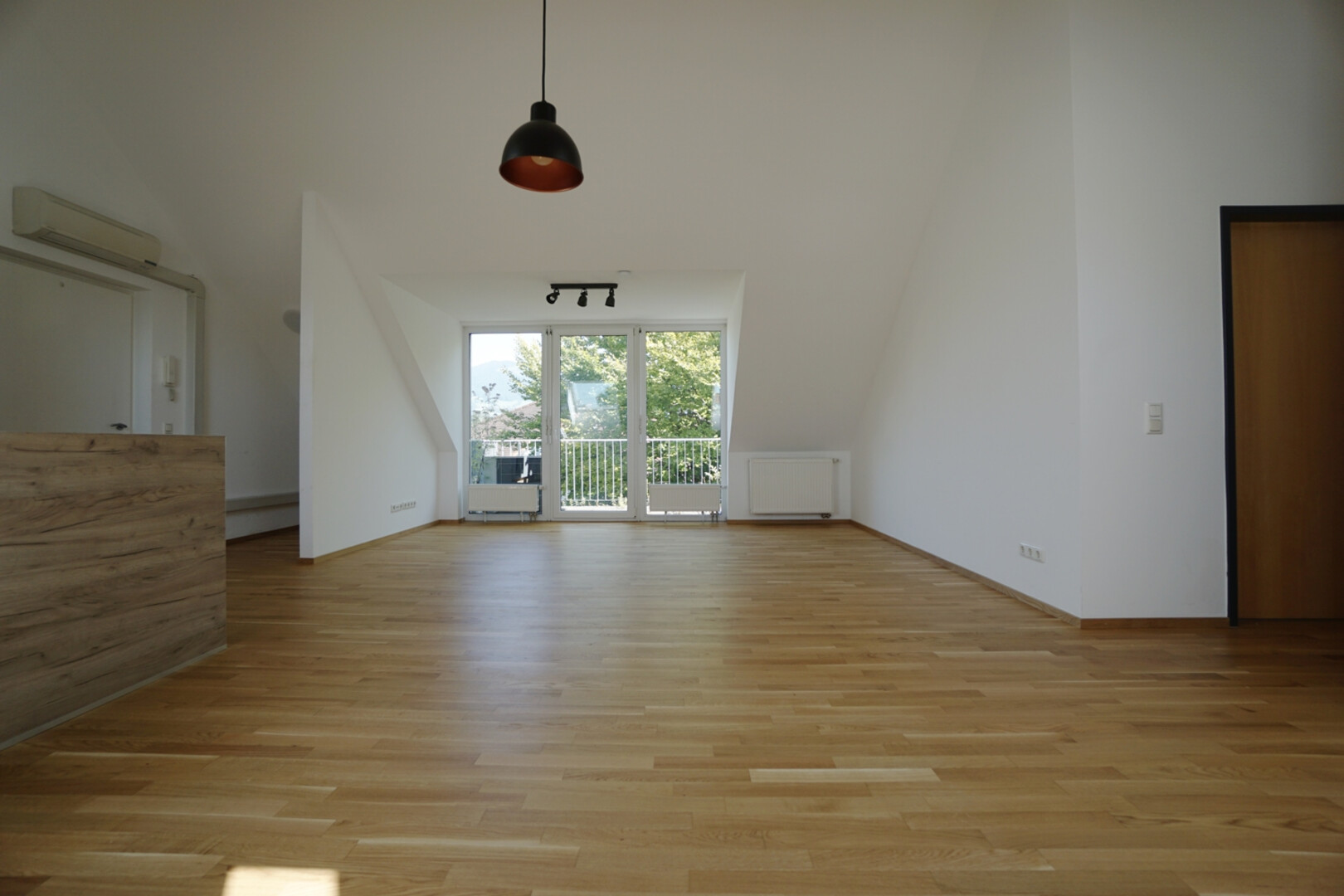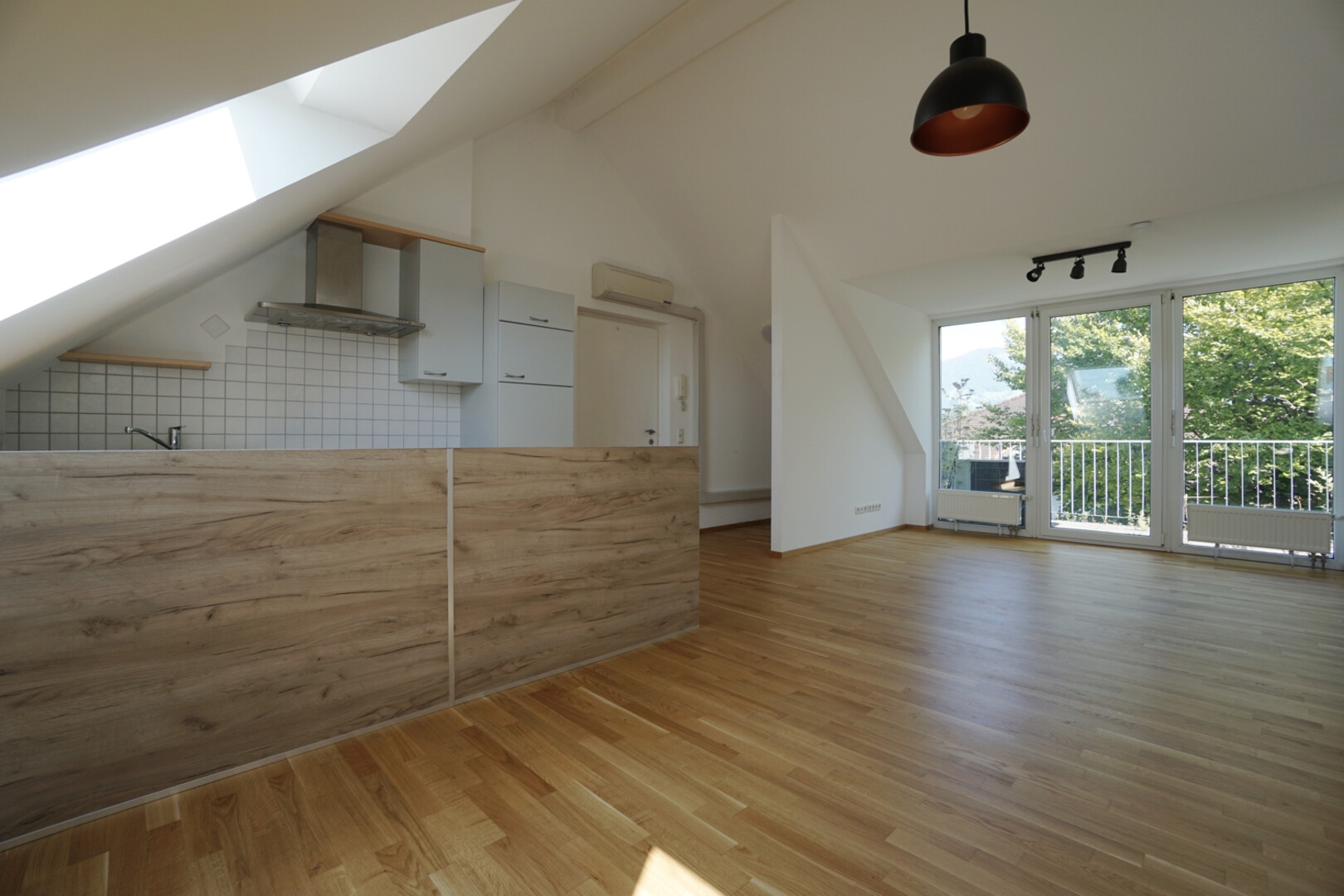 Somit ergibt sich eine Wohnfläche von ca. 66,34 m² inklusive Dachschrägen. Abzüglich diesen Dachschrägen ab 1,80m beläuft sich die Wohnnutzfläche auf ca. 51 m². Die großzügige Terrasse mit ca. 12,95 m² bietet genügend Platz um die wunderbare Aussicht zu genießen und den Tag gemütlich ausklingen zu lassen. Durch die große Glasfront im Wohnbereich und im Schlafzimmer wird die Wohnung regelrecht mit Licht durchflutet. Im Badezimmer wurden pflegeleichte und schöne Fliesen verlegt.