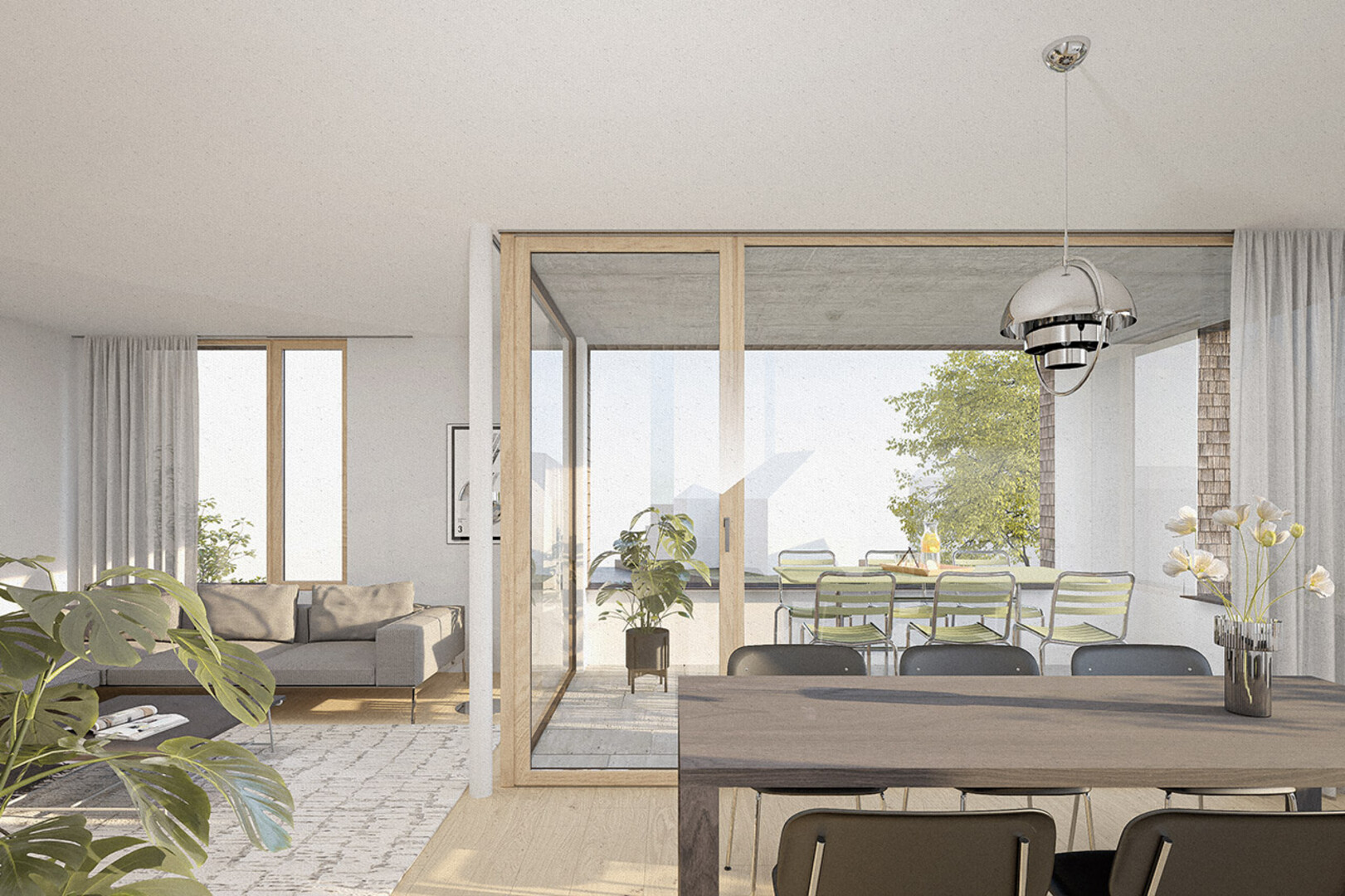 Die Beheizung ist mittels Wärmepumpe mit Erdsonden geplant. Die Wohnungen im Erdgeschoss verfügen über Logien mit Privatgärten, die Wohnungen in den Obergeschossen über Logien bzw. Dachterrassen.