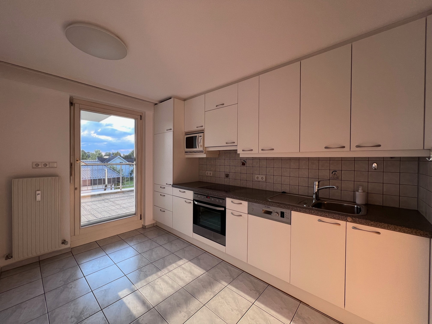 Der Eingangsbereich, die Küche und das Badezimmer wurden mit einem pflegeleichten Fließenboden versehen. Alle anderen Räume sind mit einem Parkettboden ausgestattet.