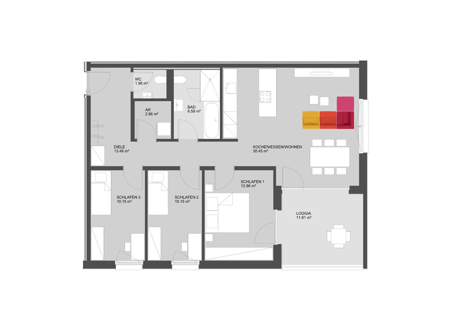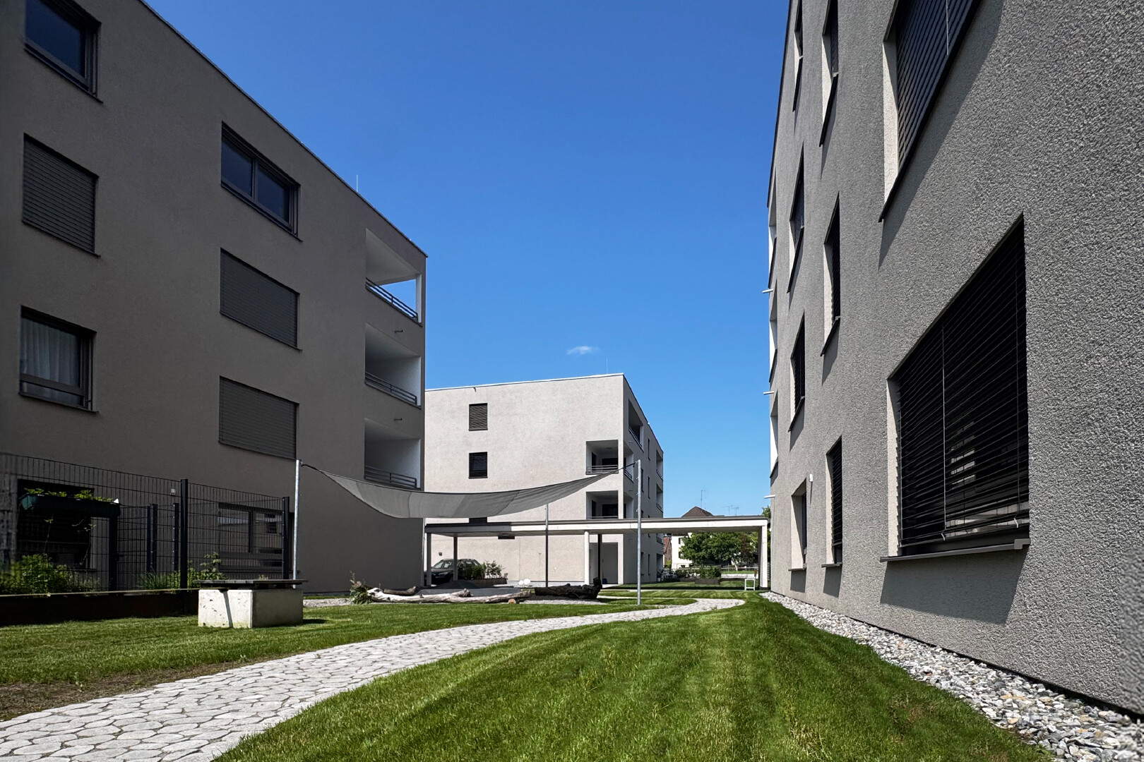 Eingebettet in eine wunderschöne Parkanlage mit Kletterwand, Steingarten und Hochbeeten werden die 4 Baukörper mit jeweils 11 bis 14 Einheiten auf das Grundstück platziert. Die 2-, 3- und 4-Zimmer-Wohnungen bestechen durch lichtdurchflutete Räumlichkeiten, durchdachte Grundrisse und hochwertige Ausstattung. Großzügige Gärten und Loggien erweitern das Raumangebot um private Freiräume zum Entspannen oder auch um ein kleines Workout zu betreiben.
