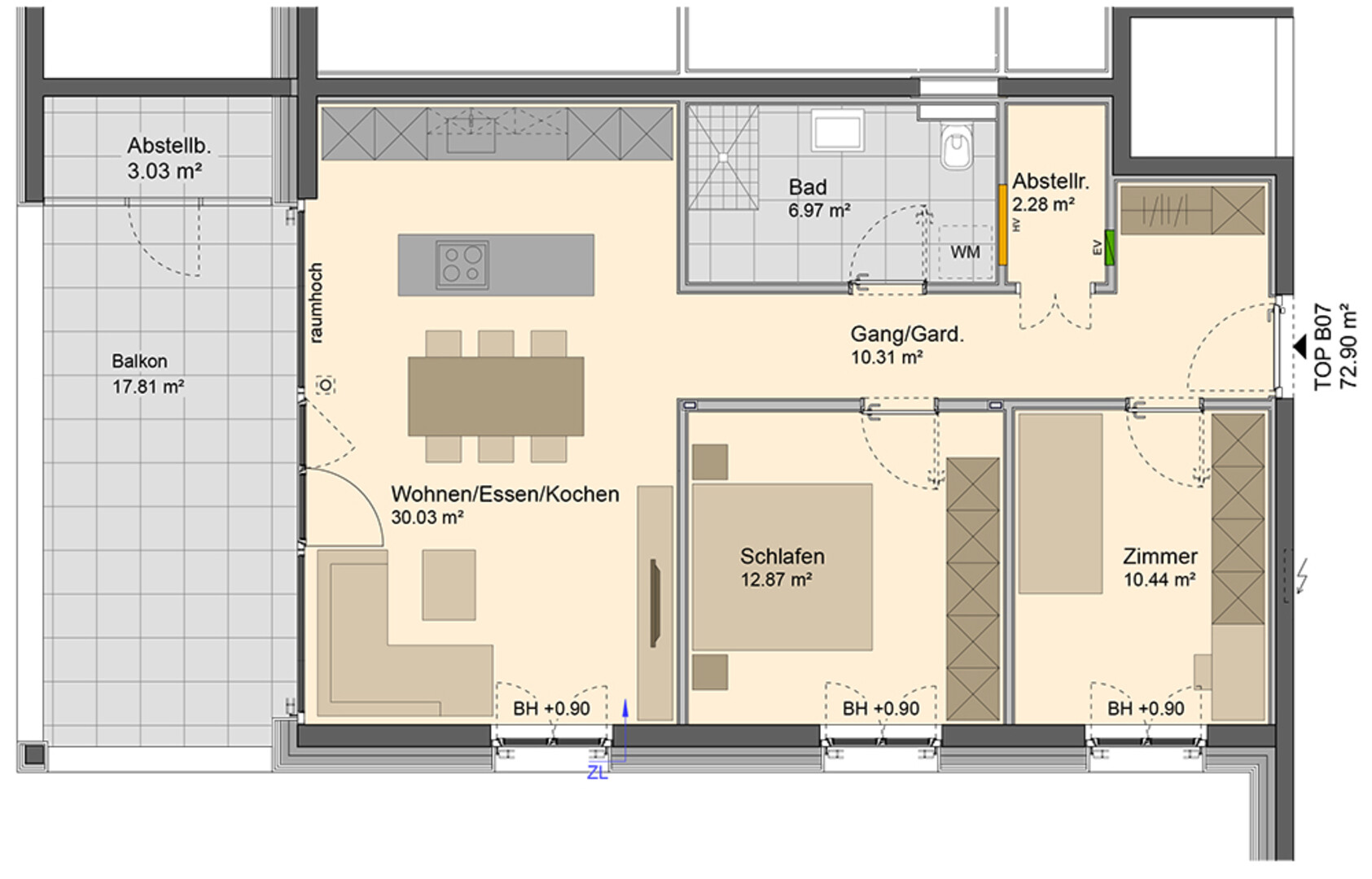 Moderne, optimal aufgeteilte 3-Zimmer Terrassenwohnung (Top B07)